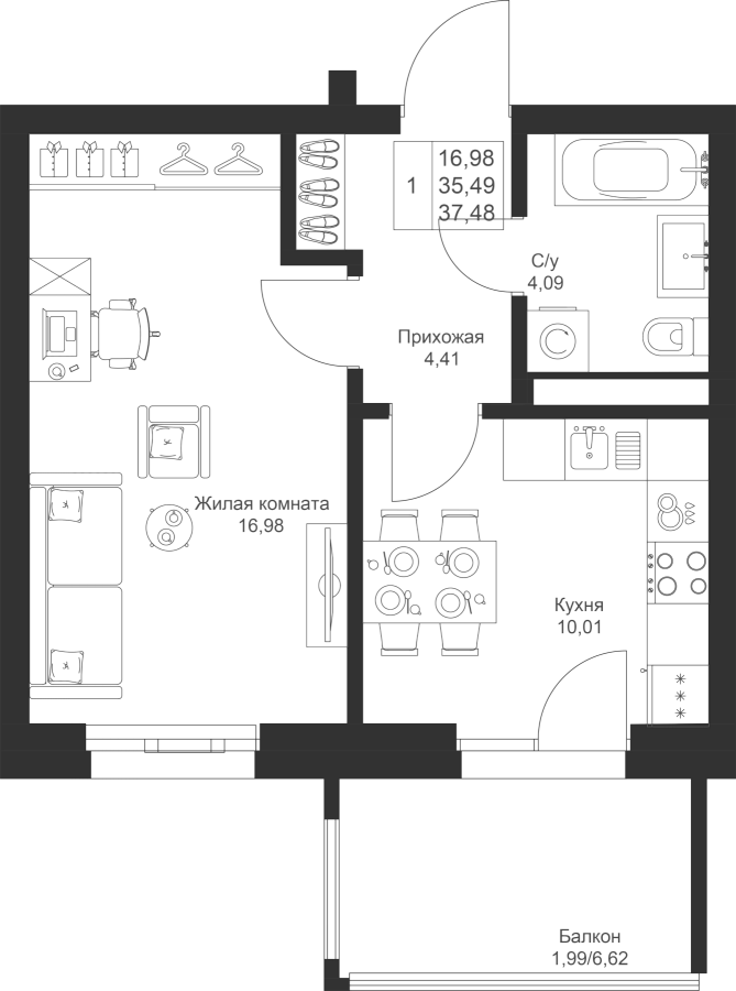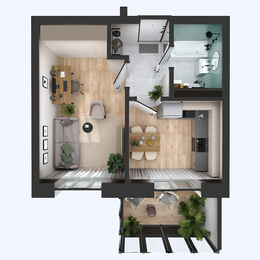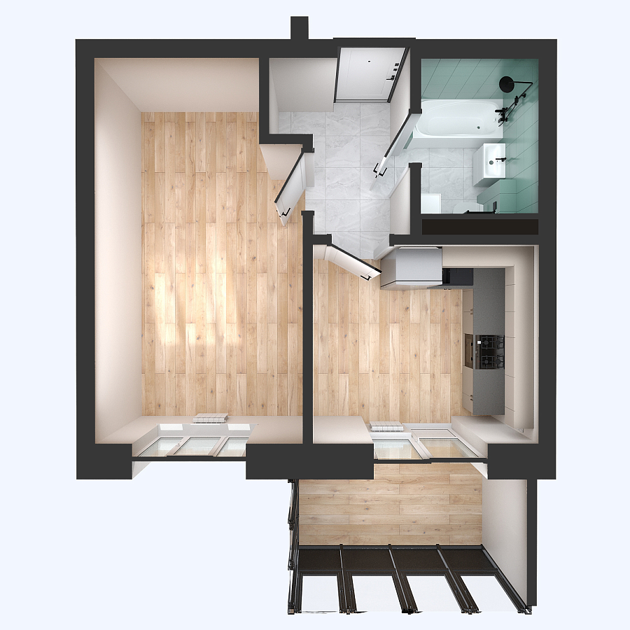 Визуализация и планировка, в том числе в части площади и размера стен жилого помещения, используемых цветовых решений на плане являются проектными и могут быть изменены в ходе строительства объекта. Цена квартиры зависит от выбранной программы и акции, актуальные цены можно уточнить у менеджеров и на момент заключения договора.