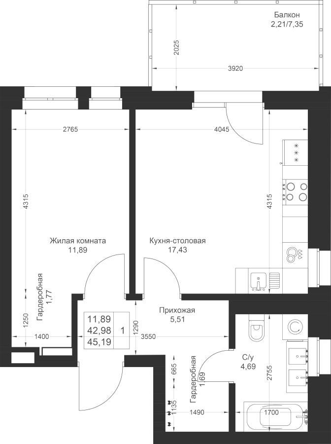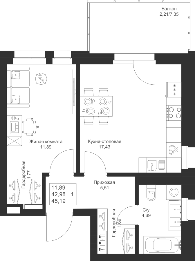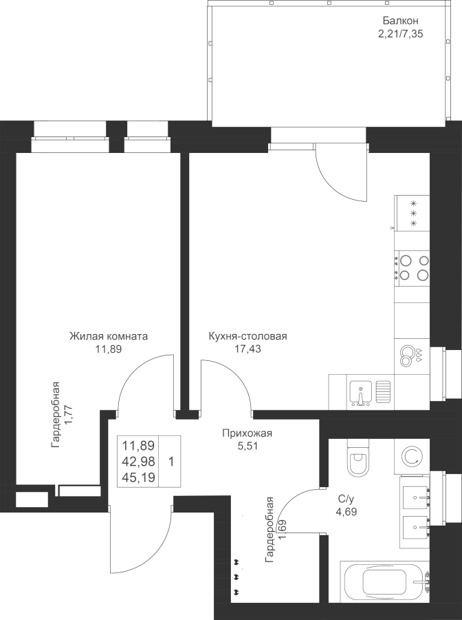 Визуализация и планировка, в том числе в части площади и размера стен жилого помещения, используемых цветовых решений на плане являются проектными и могут быть изменены в ходе строительства объекта. Цена квартиры зависит от выбранной программы и акции, актуальные цены можно уточнить у менеджеров и на момент заключения договора.