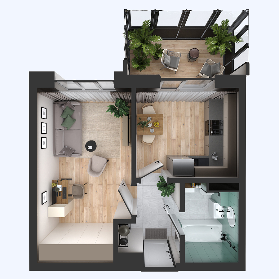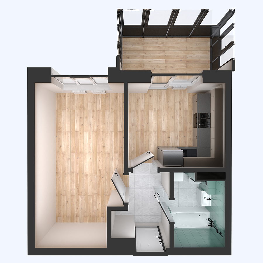 Визуализация и планировка, в том числе в части площади и размера стен жилого помещения, используемых цветовых решений на плане являются проектными и могут быть изменены в ходе строительства объекта. Цена квартиры зависит от выбранной программы и акции, актуальные цены можно уточнить у менеджеров и на момент заключения договора.