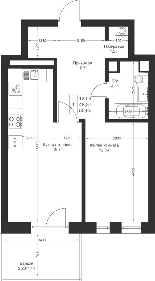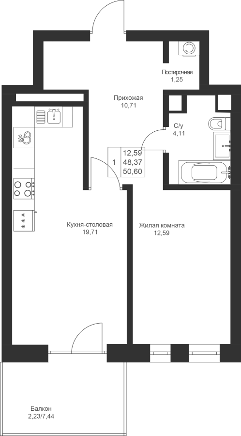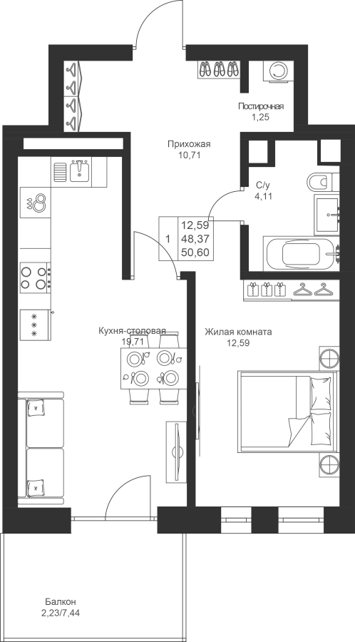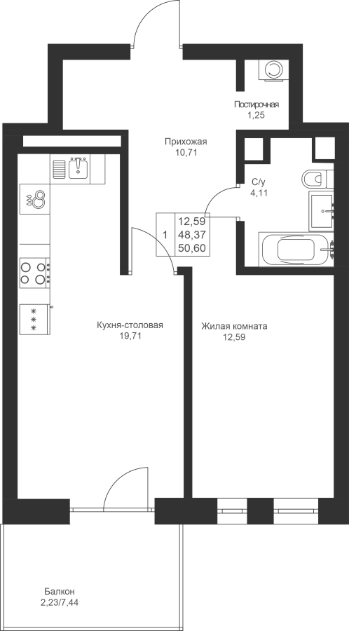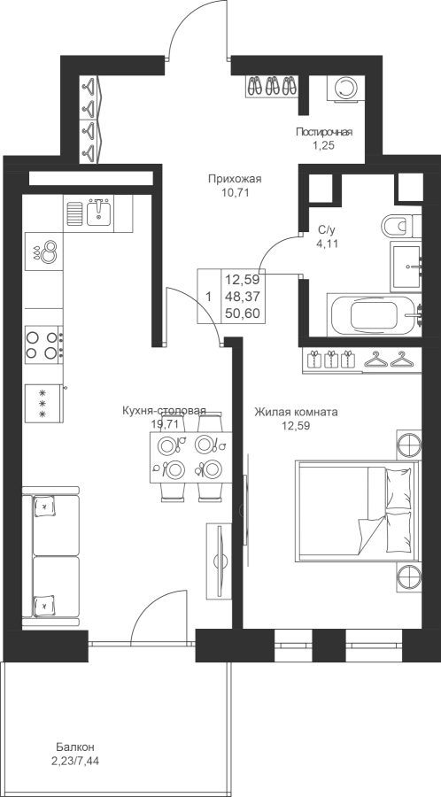 Визуализация и планировка, в том числе в части площади и размера стен жилого помещения, являются проектными и могут быть изменены в ходе строительства объекта. Цена квартиры зависит от выбранной программы и акции, актуальные цены можно уточнить у менеджеров и на момент заключения договора.