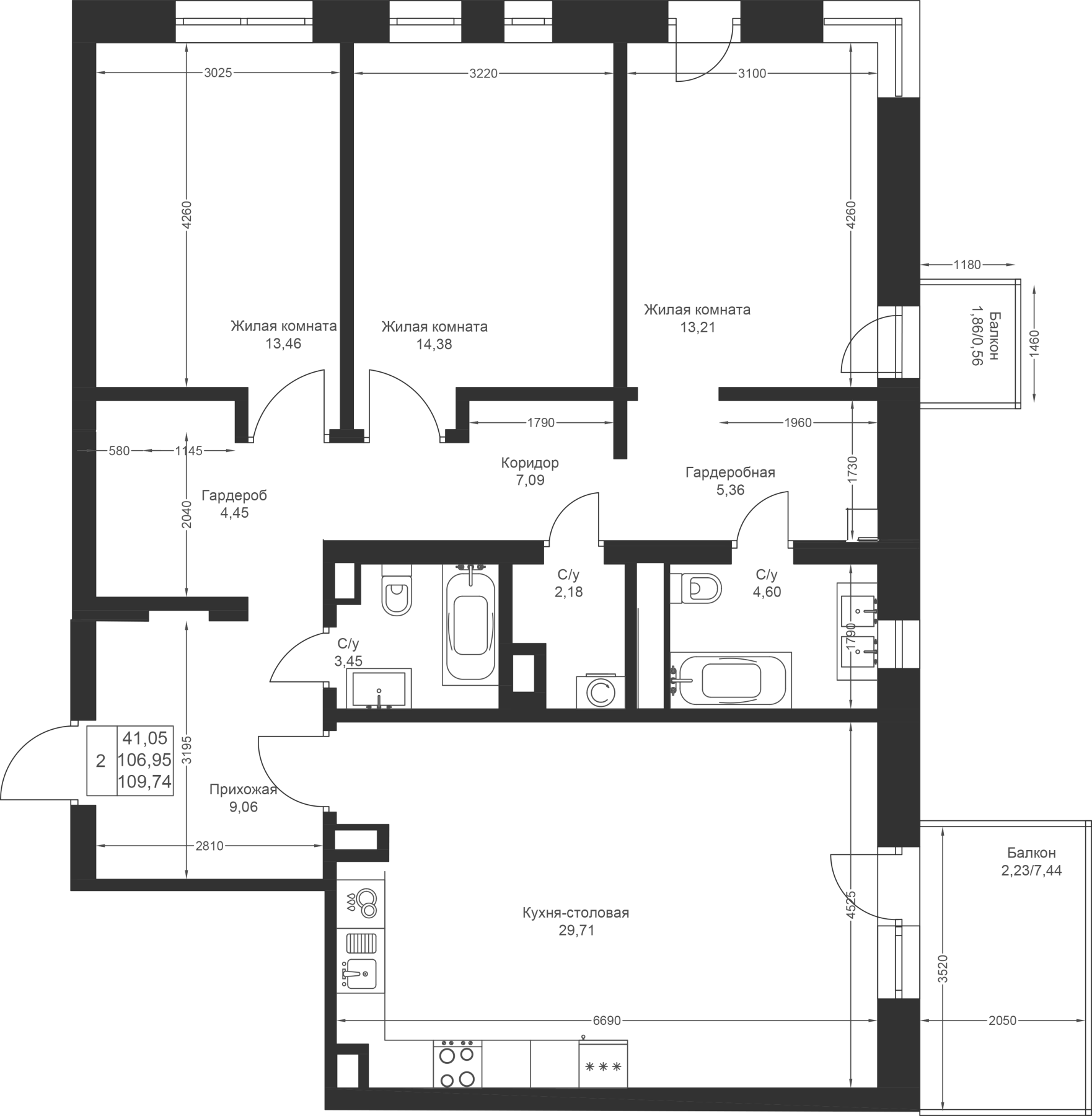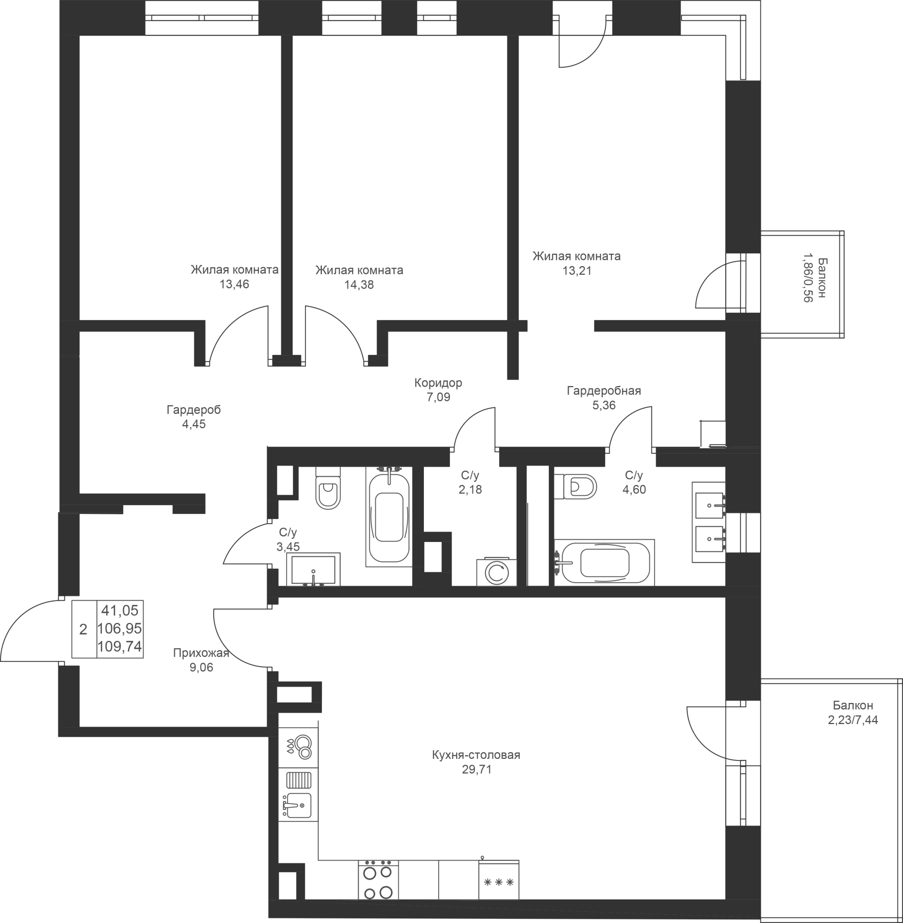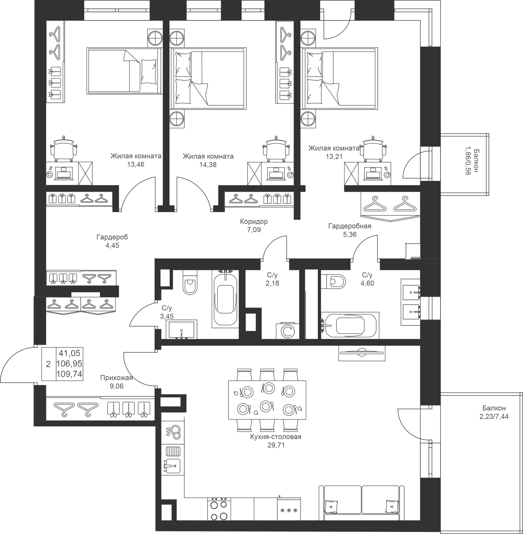 3-к квартира 109.74 м²