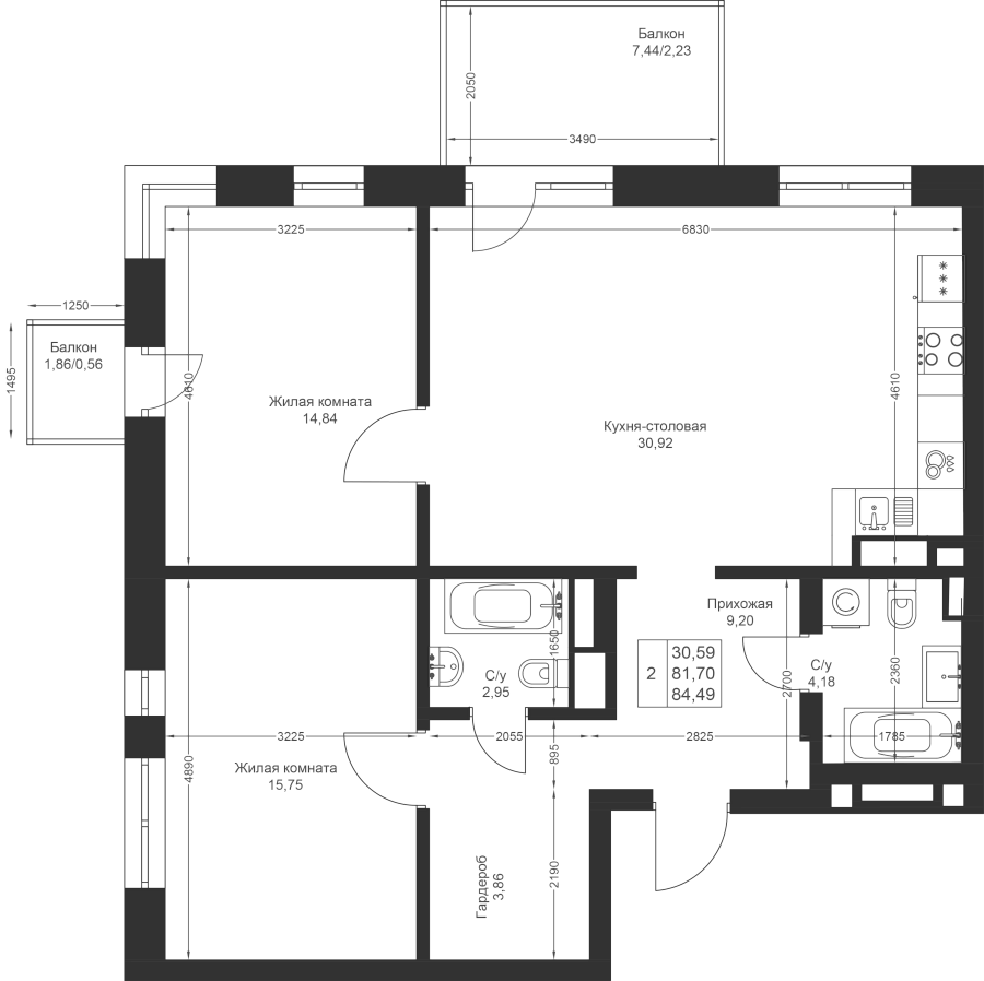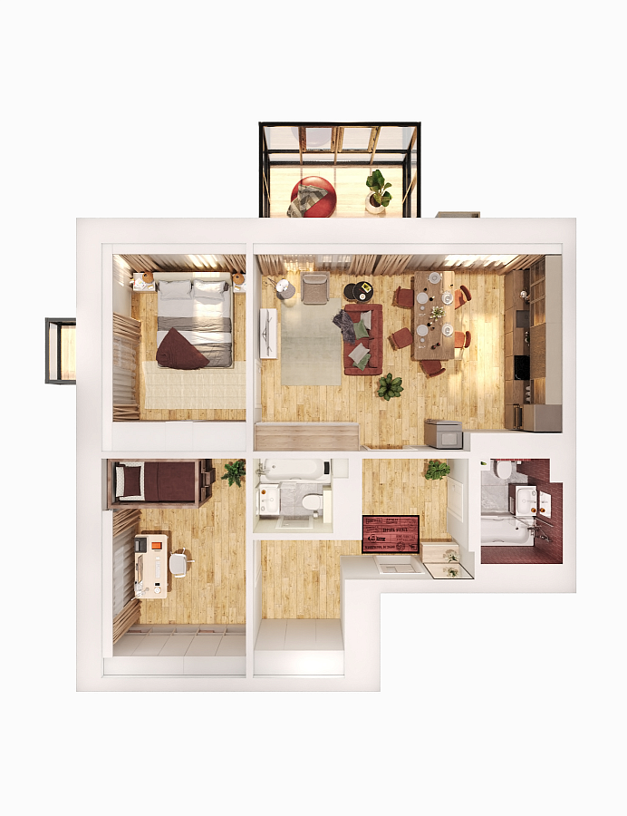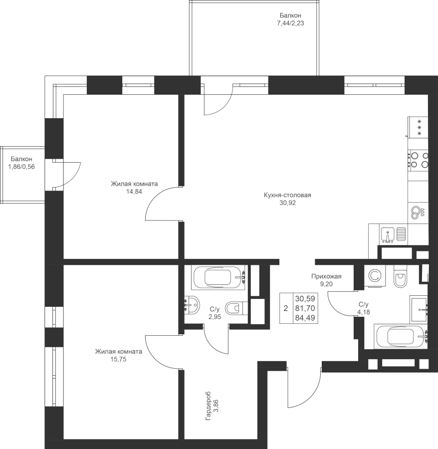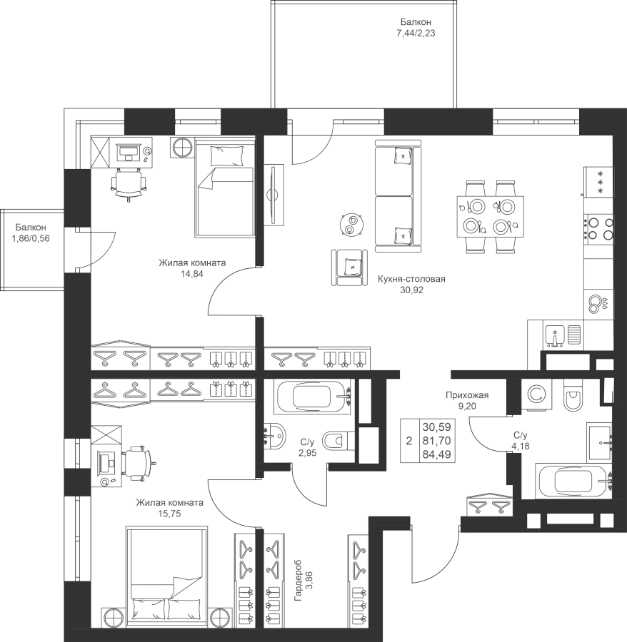 Визуализация и планировка, в том числе в части площади и размера стен жилого помещения, являются проектными и могут быть изменены в ходе строительства объекта. Цена квартиры зависит от выбранной программы и акции, актуальные цены можно уточнить у менеджеров и на момент заключения договора.