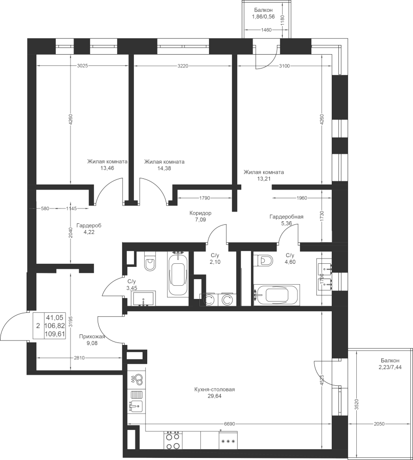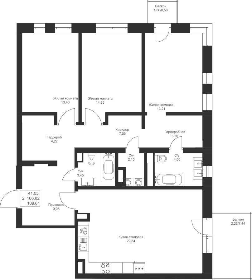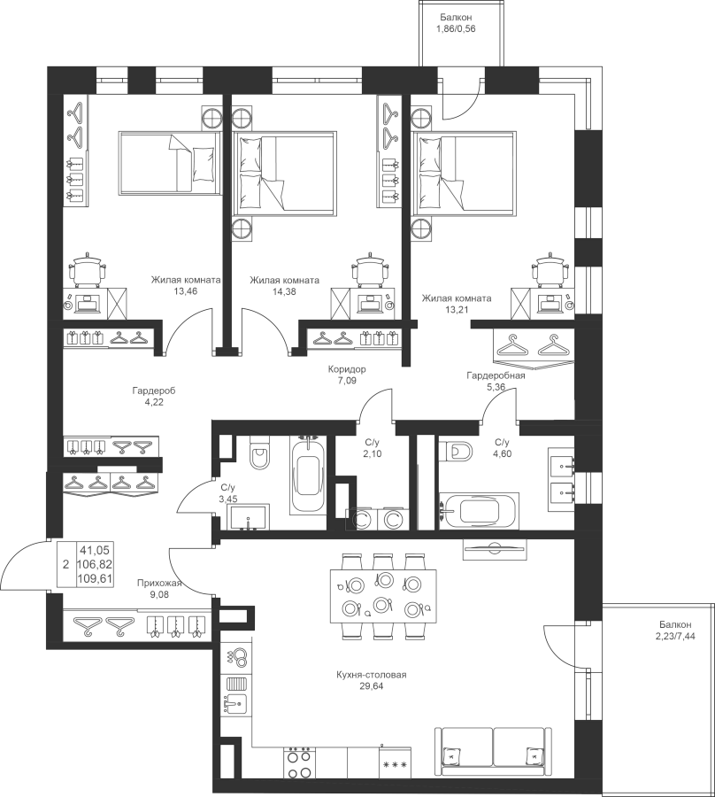 Визуализация и планировка, в том числе в части площади и размера стен жилого помещения, являются проектными и могут быть изменены в ходе строительства объекта. Цена квартиры зависит от выбранной программы и акции, актуальные цены можно уточнить у менеджеров и на момент заключения договора.