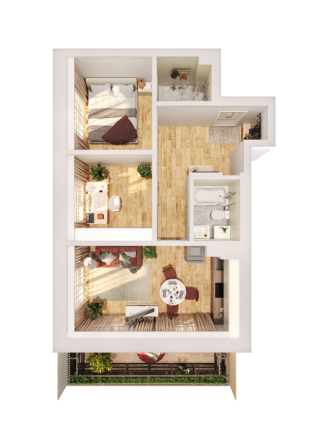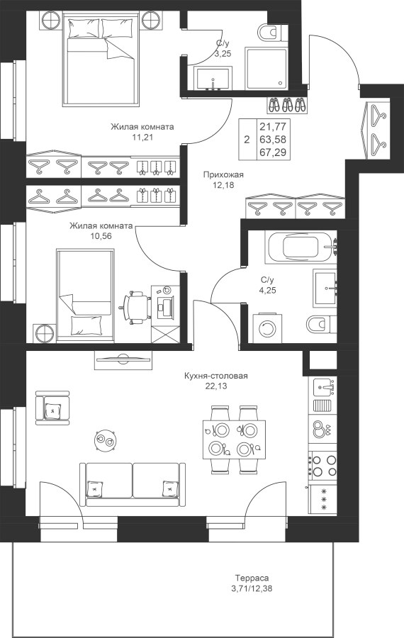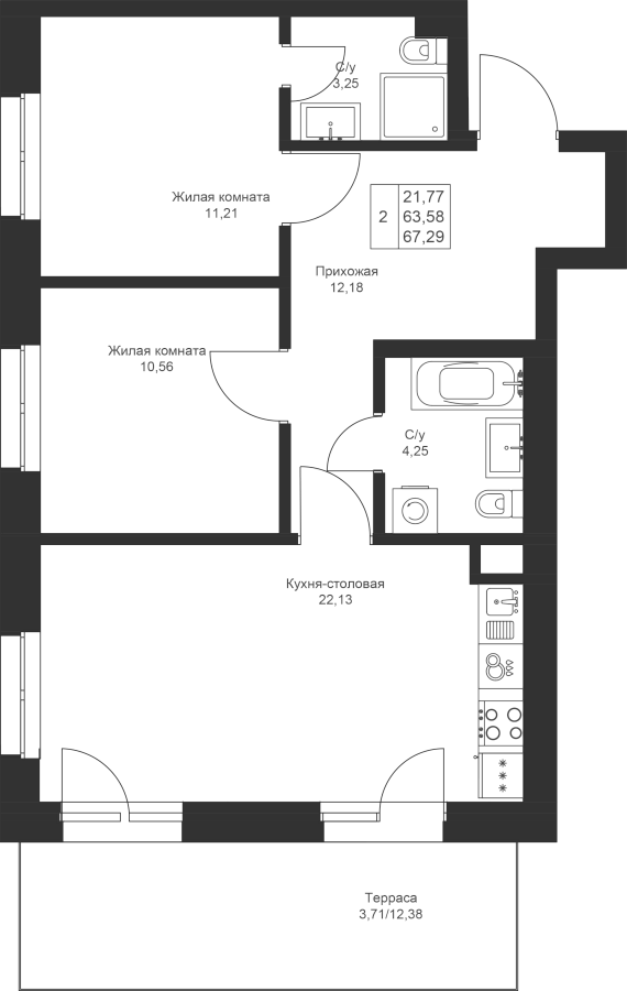 Визуализация и планировка, в том числе в части площади и размера стен жилого помещения, являются проектными и могут быть изменены в ходе строительства объекта. Цена квартиры зависит от выбранной программы и акции, актуальные цены можно уточнить у менеджеров и на момент заключения договора.