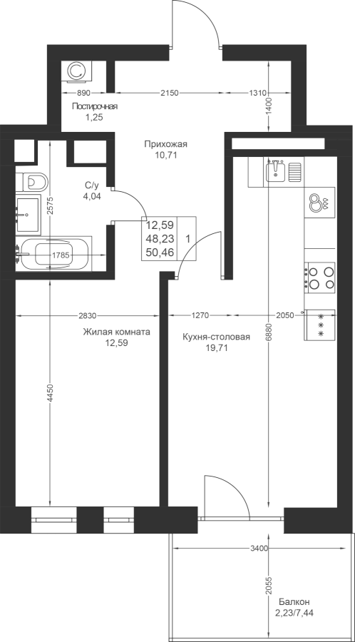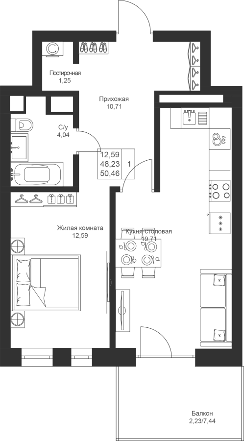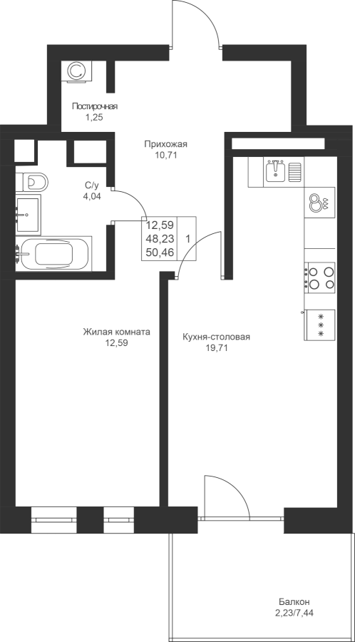 Визуализация и планировка, в том числе в части площади и размера стен жилого помещения, являются проектными и могут быть изменены в ходе строительства объекта. Цена квартиры зависит от выбранной программы и акции, актуальные цены можно уточнить у менеджеров и на момент заключения договора.