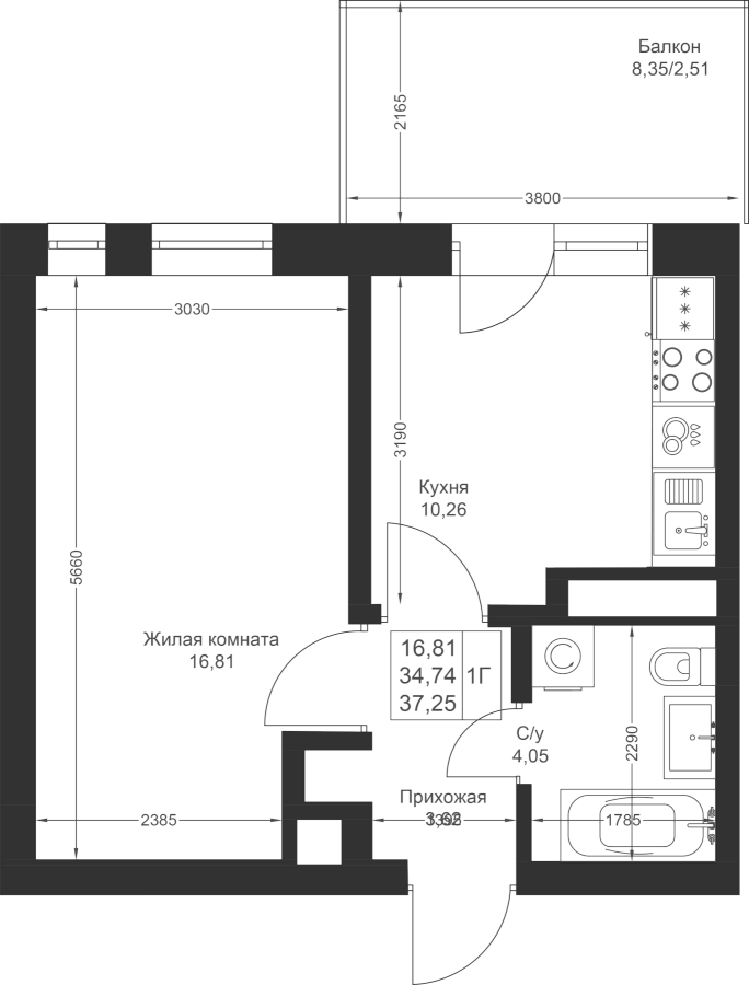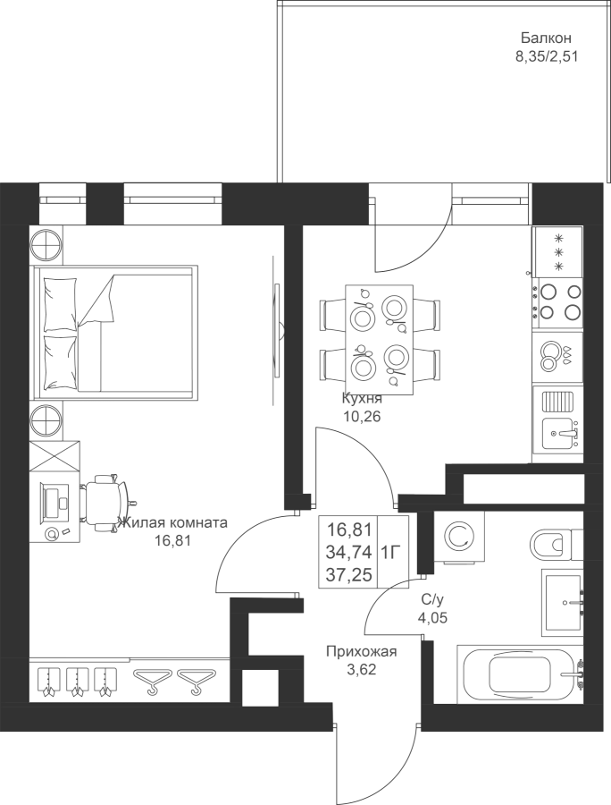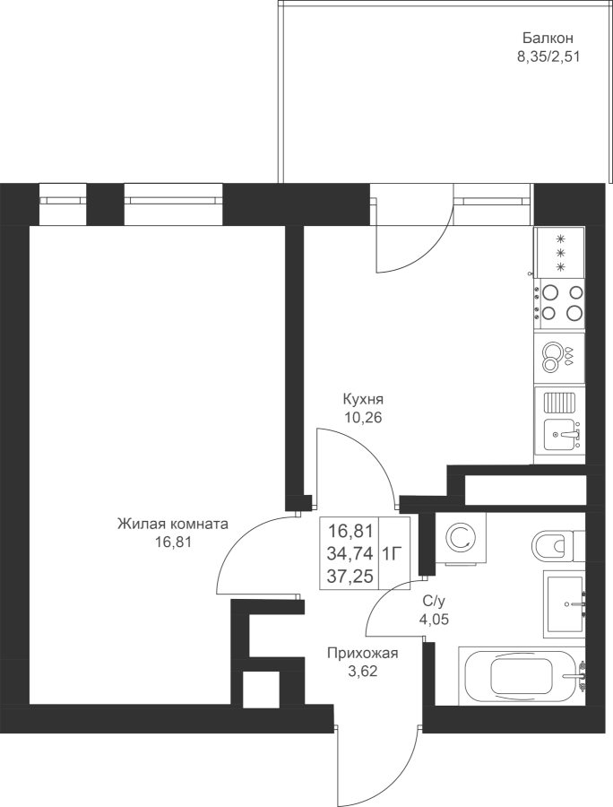 1-к квартира 37.25 м²