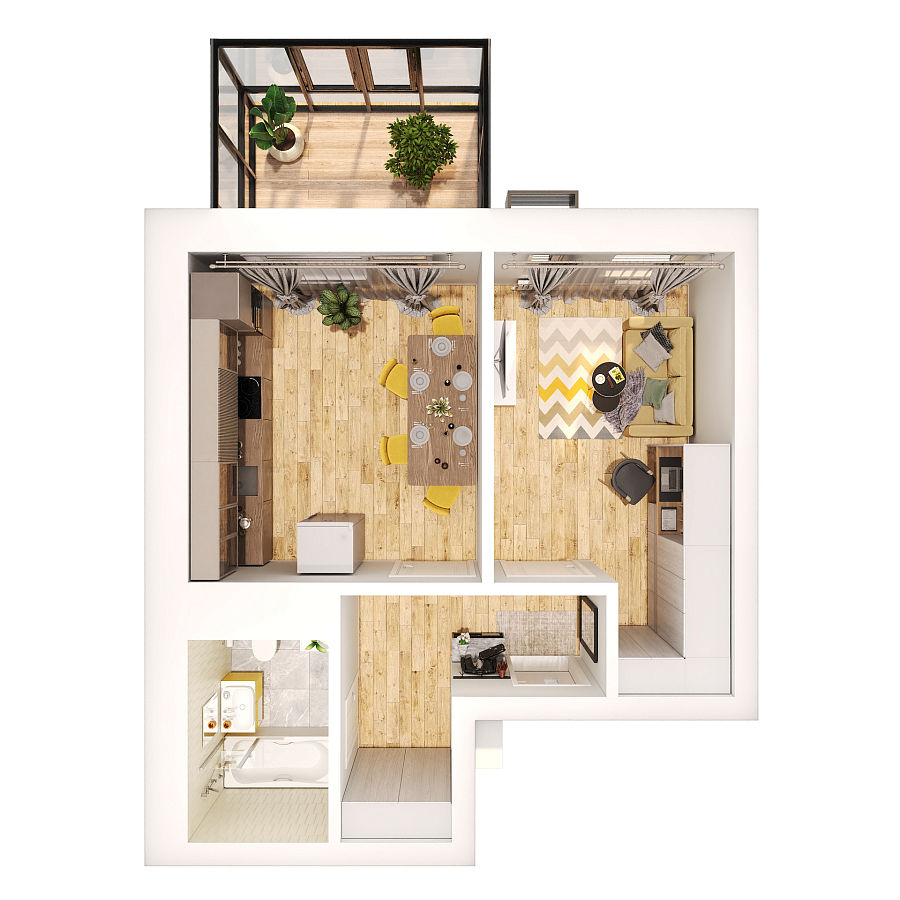 Визуализация и планировка, в том числе в части площади и размера стен жилого помещения, являются проектными и могут быть изменены в ходе строительства объекта. Цена квартиры зависит от выбранной программы и акции, актуальные цены можно уточнить у менеджеров и на момент заключения договора.
