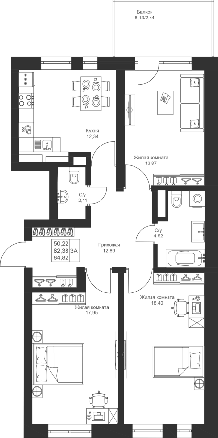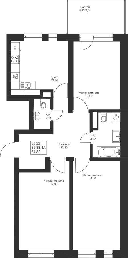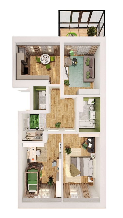 Визуализация и планировка, в том числе в части площади и размера стен жилого помещения, являются проектными и могут быть изменены в ходе строительства объекта. Цена квартиры зависит от выбранной программы и акции, актуальные цены можно уточнить у менеджеров и на момент заключения договора.