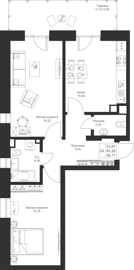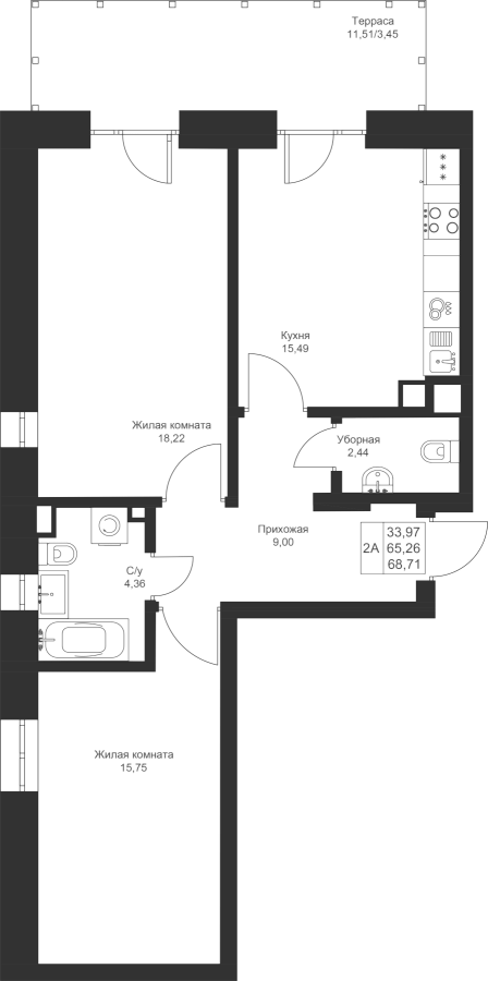 2-к квартира 68.71 м²