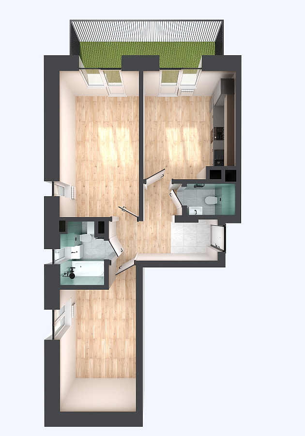 Визуализация и планировка, в том числе в части площади и размера стен жилого помещения, используемых цветовых решений на плане являются проектными и могут быть изменены в ходе строительства объекта. Цена квартиры зависит от выбранной программы и акции, актуальные цены можно уточнить у менеджеров и на момент заключения договора.
