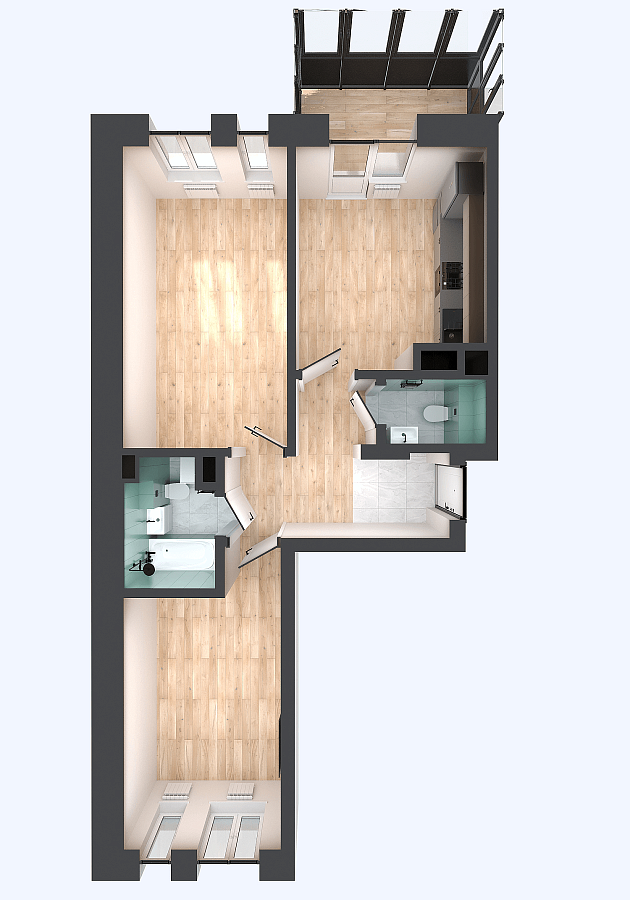 Визуализация и планировка, в том числе в части площади и размера стен жилого помещения, используемых цветовых решений на плане являются проектными и могут быть изменены в ходе строительства объекта. Цена квартиры зависит от выбранной программы и акции, актуальные цены можно уточнить у менеджеров и на момент заключения договора.