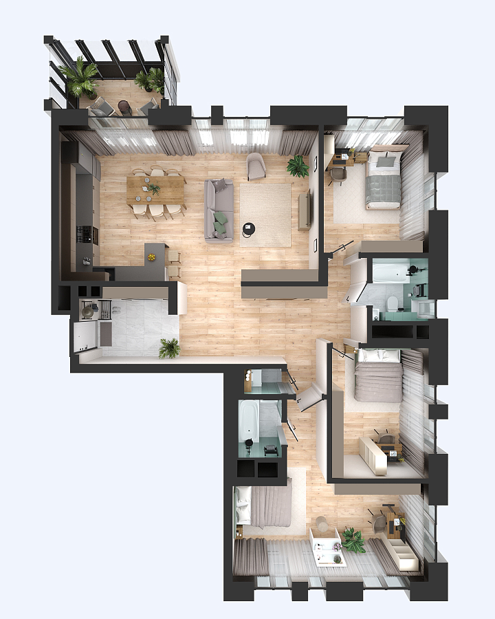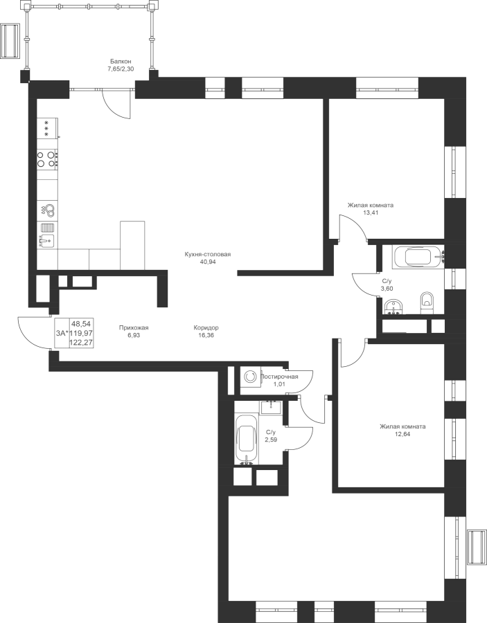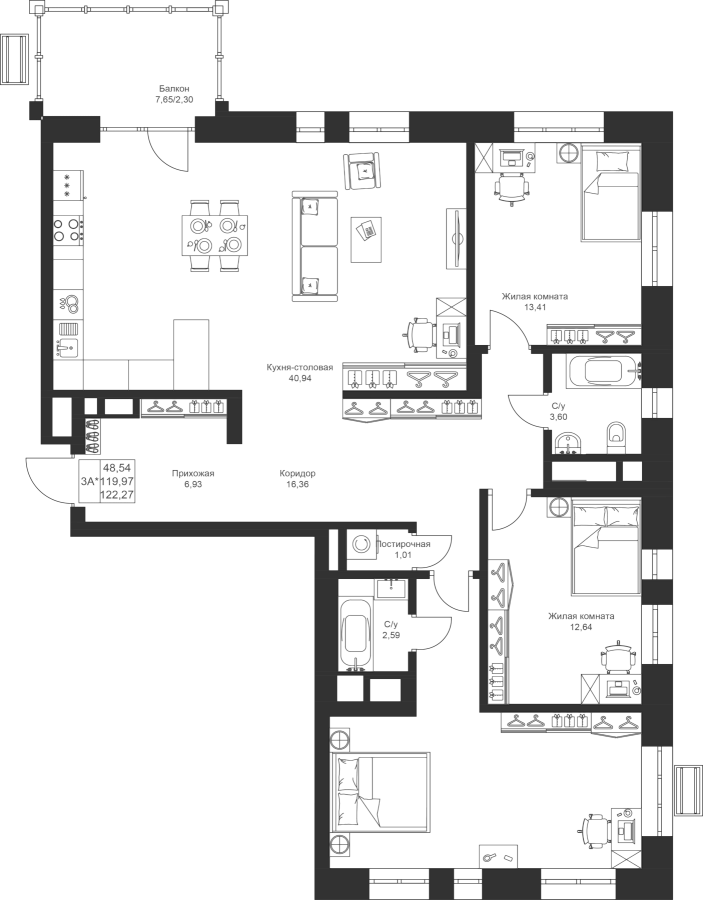 Визуализация и планировка, в том числе в части площади и размера стен жилого помещения, являются проектными и могут быть изменены в ходе строительства объекта. Цена квартиры зависит от выбранной программы и акции, актуальные цены можно уточнить у менеджеров и на момент заключения договора.