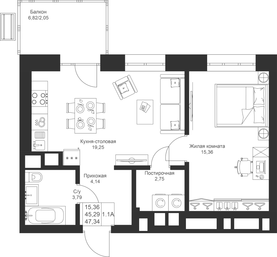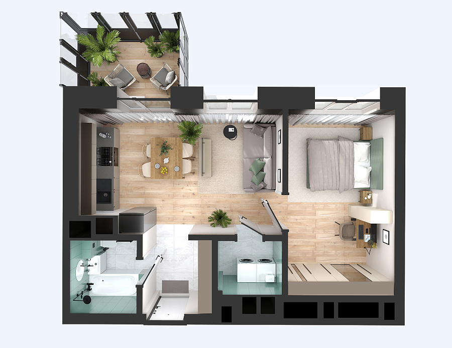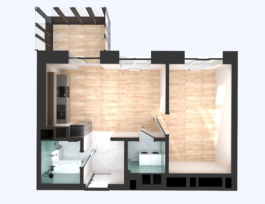 Визуализация и планировка, в том числе в части площади и размера стен жилого помещения, используемых цветовых решений на плане являются проектными и могут быть изменены в ходе строительства объекта. Цена квартиры зависит от выбранной программы и акции, актуальные цены можно уточнить у менеджеров и на момент заключения договора.