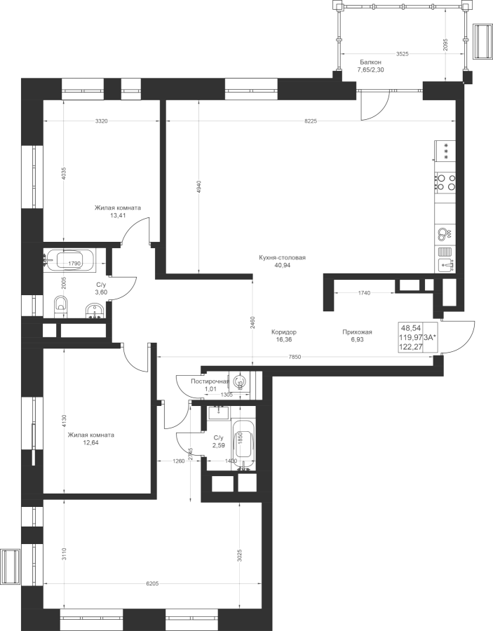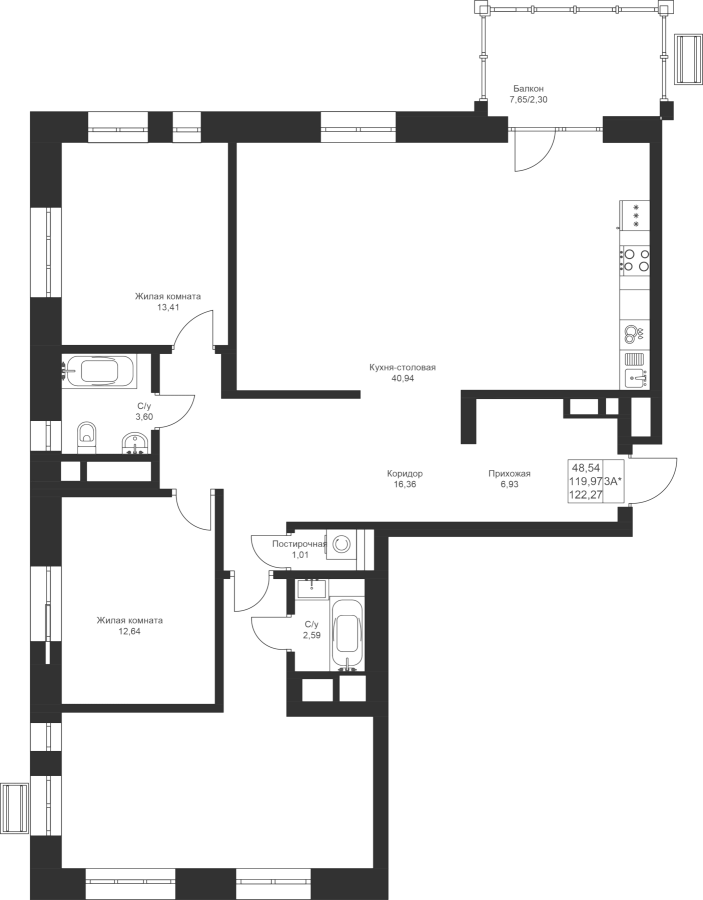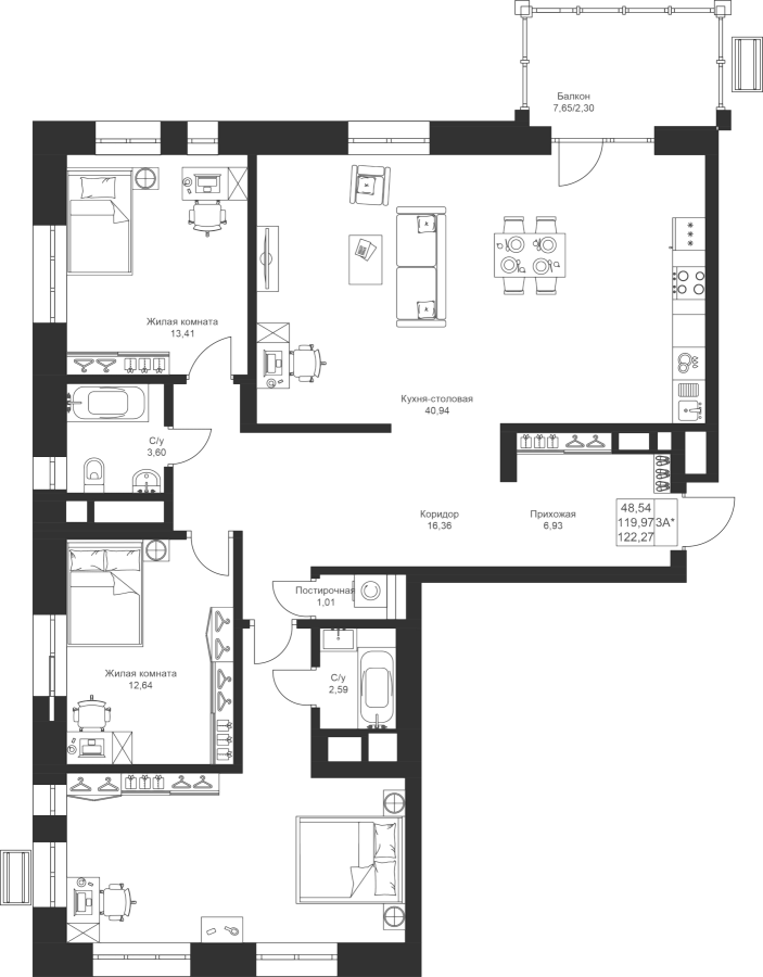 Визуализация и планировка, в том числе в части площади и размера стен жилого помещения, являются проектными и могут быть изменены в ходе строительства объекта. Цена квартиры зависит от выбранной программы и акции, актуальные цены можно уточнить у менеджеров и на момент заключения договора.