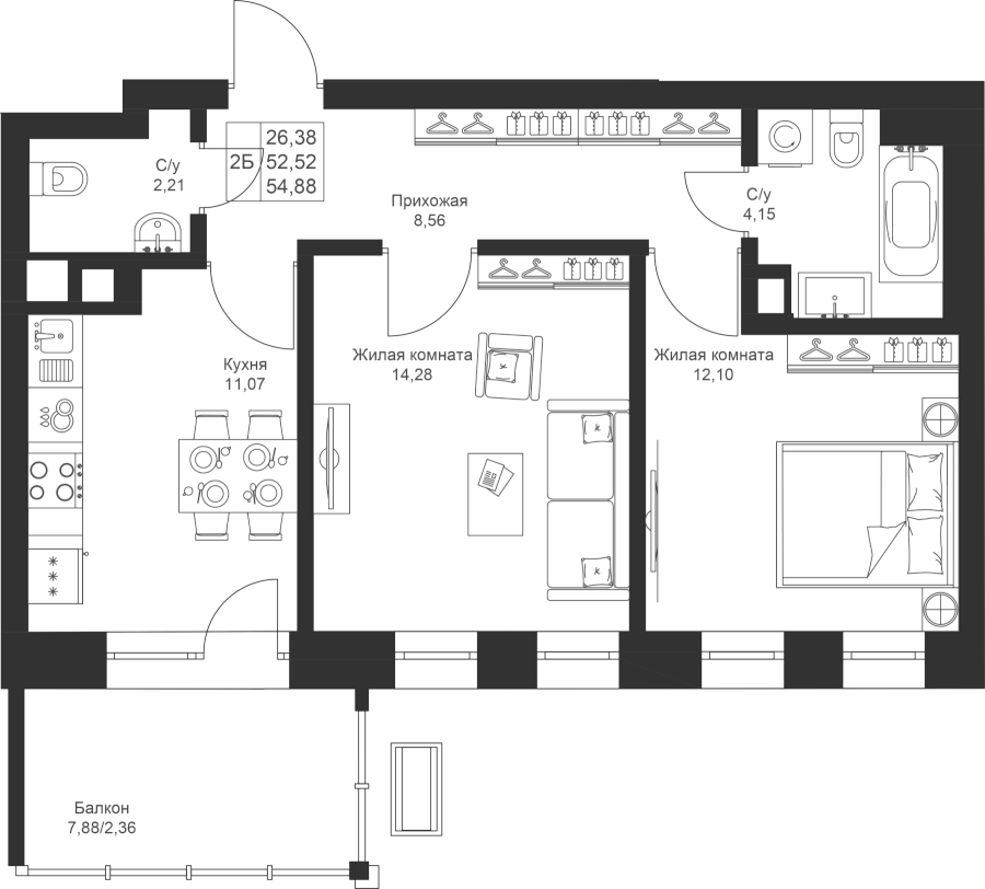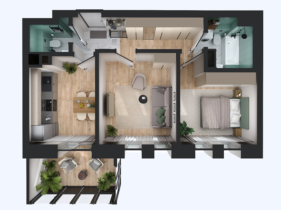 Визуализация и планировка, в том числе в части площади и размера стен жилого помещения, используемых цветовых решений на плане являются проектными и могут быть изменены в ходе строительства объекта. Цена квартиры зависит от выбранной программы и акции, актуальные цены можно уточнить у менеджеров и на момент заключения договора.