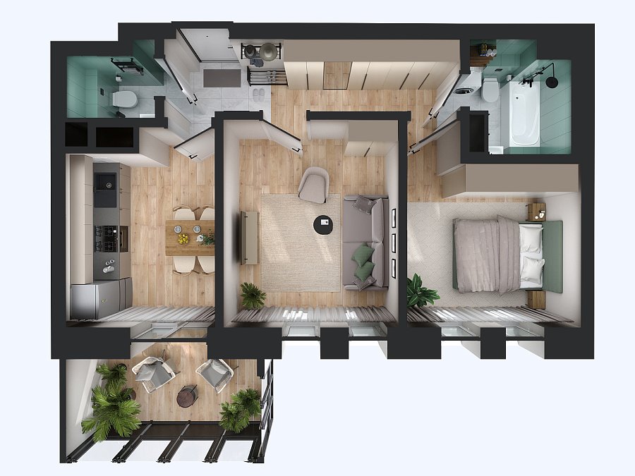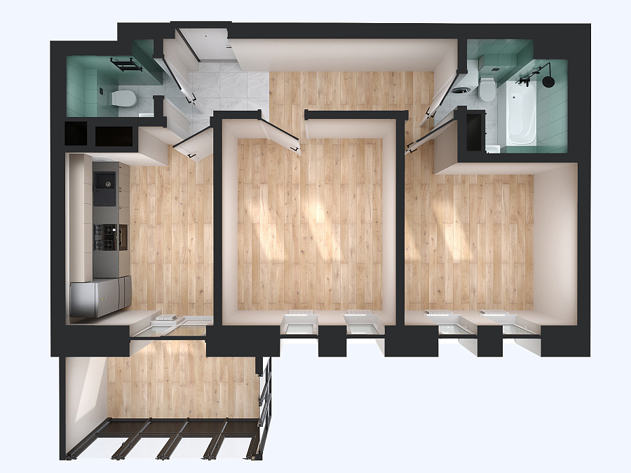 Визуализация и планировка, в том числе в части площади и размера стен жилого помещения, используемых цветовых решений на плане являются проектными и могут быть изменены в ходе строительства объекта. Цена квартиры зависит от выбранной программы и акции, актуальные цены можно уточнить у менеджеров и на момент заключения договора.