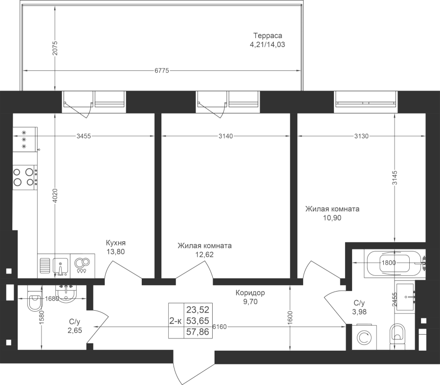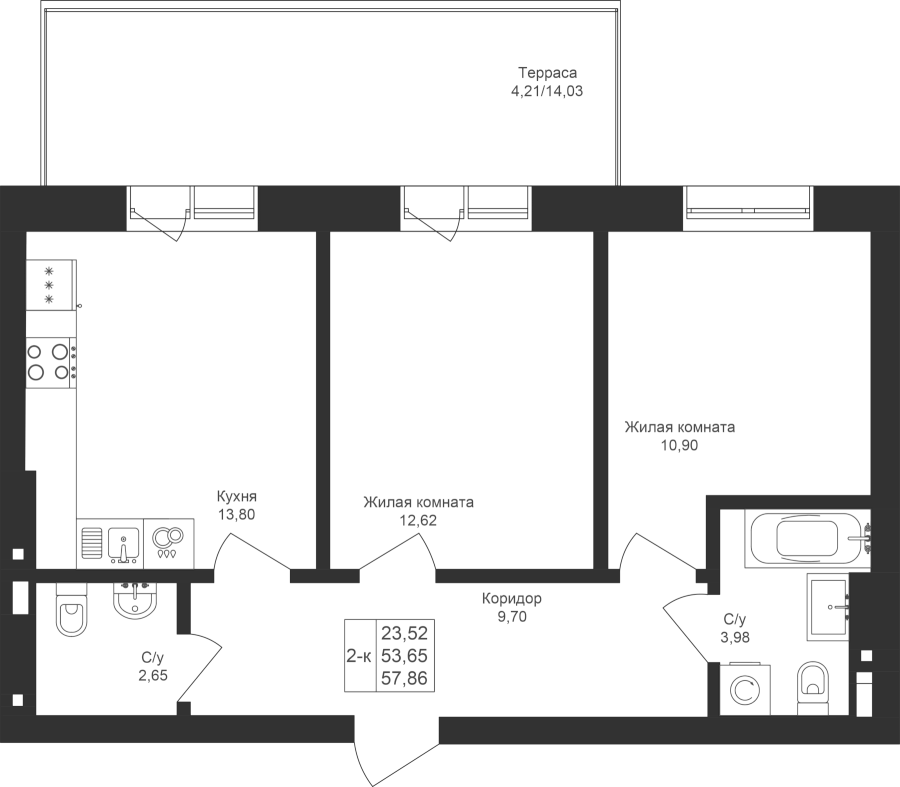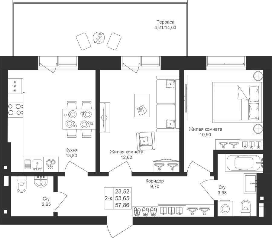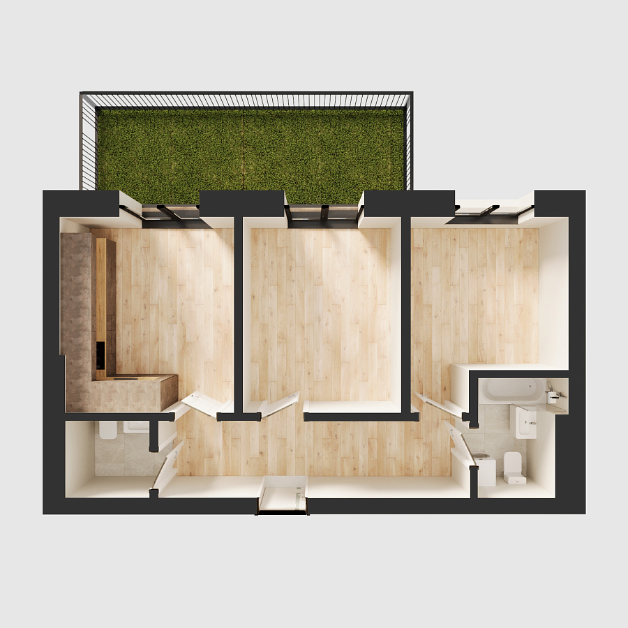 Визуализация и планировка, в том числе в части площади и размера стен жилого помещения, являются проектными и могут быть изменены в ходе строительства объекта. Цена квартиры зависит от выбранной программы и акции, актуальные цены можно уточнить у менеджеров и на момент заключения договора.