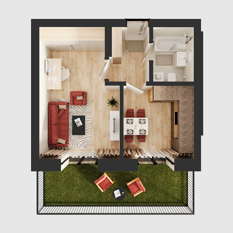 Визуализация и планировка, в том числе в части площади и размера стен жилого помещения, являются проектными и могут быть изменены в ходе строительства объекта. Цена квартиры зависит от выбранной программы и акции, актуальные цены можно уточнить у менеджеров и на момент заключения договора.