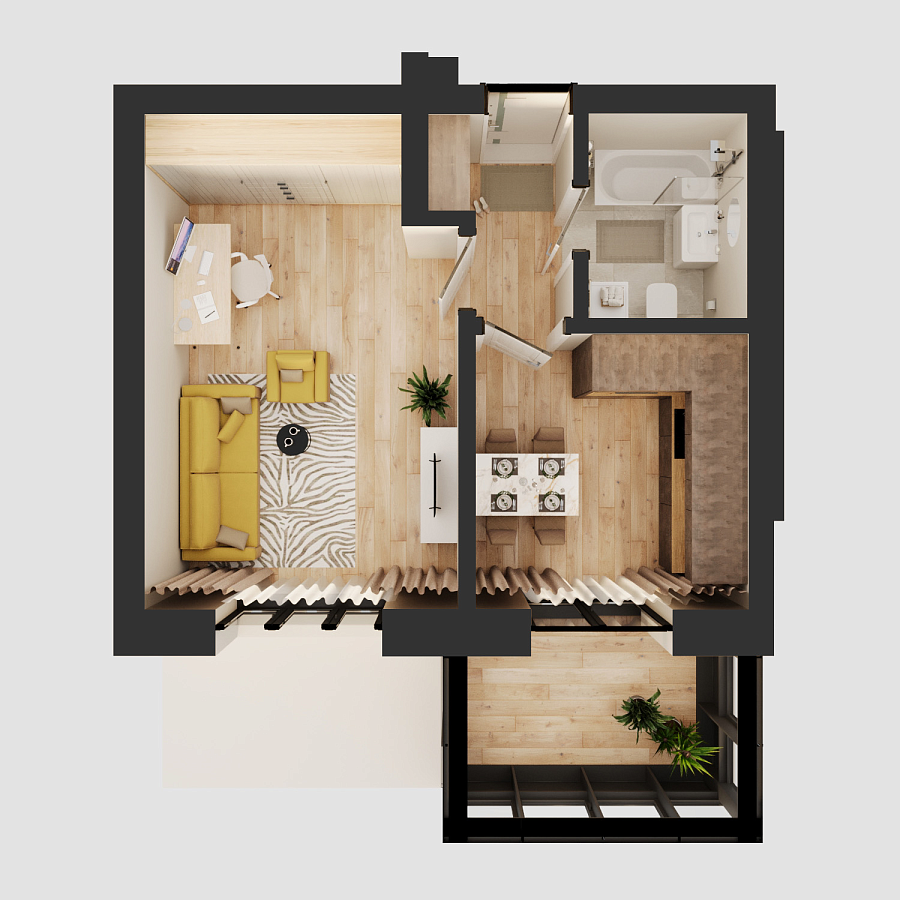 Визуализация и планировка, в том числе в части площади и размера стен жилого помещения, являются проектными и могут быть изменены в ходе строительства объекта. Цена квартиры зависит от выбранной программы и акции, актуальные цены можно уточнить у менеджеров и на момент заключения договора.