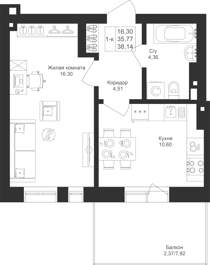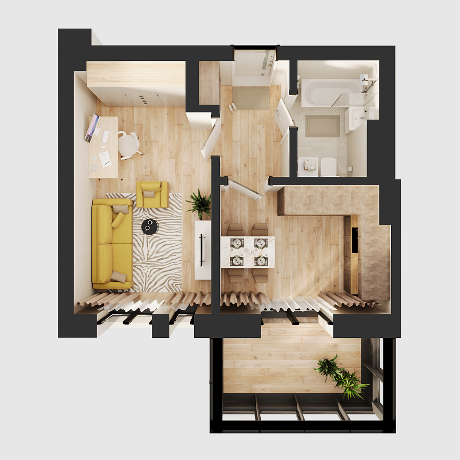 Визуализация и планировка, в том числе в части площади и размера стен жилого помещения, являются проектными и могут быть изменены в ходе строительства объекта. Цена квартиры зависит от выбранной программы и акции, актуальные цены можно уточнить у менеджеров и на момент заключения договора.