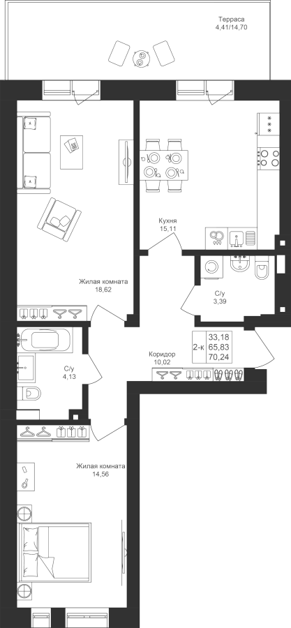 Визуализация и планировка, в том числе в части площади и размера стен жилого помещения, являются проектными и могут быть изменены в ходе строительства объекта. Цена квартиры зависит от выбранной программы и акции, актуальные цены можно уточнить у менеджеров и на момент заключения договора.