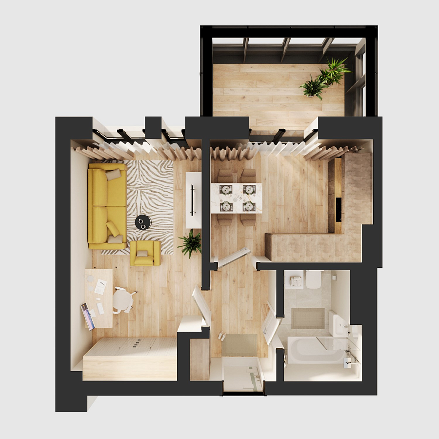 Визуализация и планировка, в том числе в части площади и размера стен жилого помещения, являются проектными и могут быть изменены в ходе строительства объекта. Цена квартиры зависит от выбранной программы и акции, актуальные цены можно уточнить у менеджеров и на момент заключения договора.