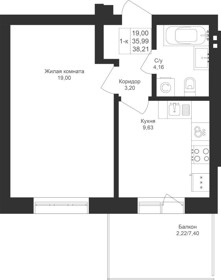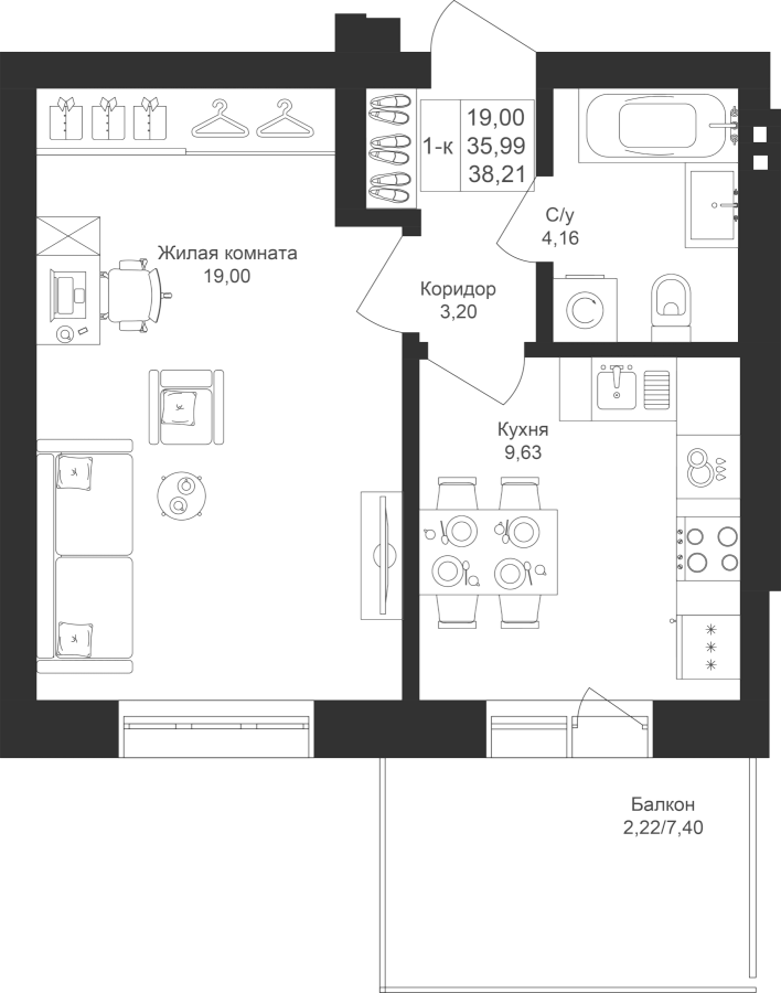 Визуализация и планировка, в том числе в части площади и размера стен жилого помещения, являются проектными и могут быть изменены в ходе строительства объекта. Цена квартиры зависит от выбранной программы и акции, актуальные цены можно уточнить у менеджеров и на момент заключения договора.