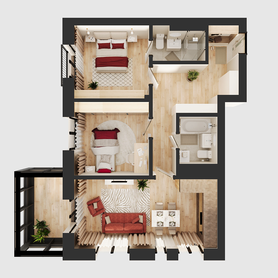Визуализация и планировка, в том числе в части площади и размера стен жилого помещения, являются проектными и могут быть изменены в ходе строительства объекта. Цена квартиры зависит от выбранной программы и акции, актуальные цены можно уточнить у менеджеров и на момент заключения договора.