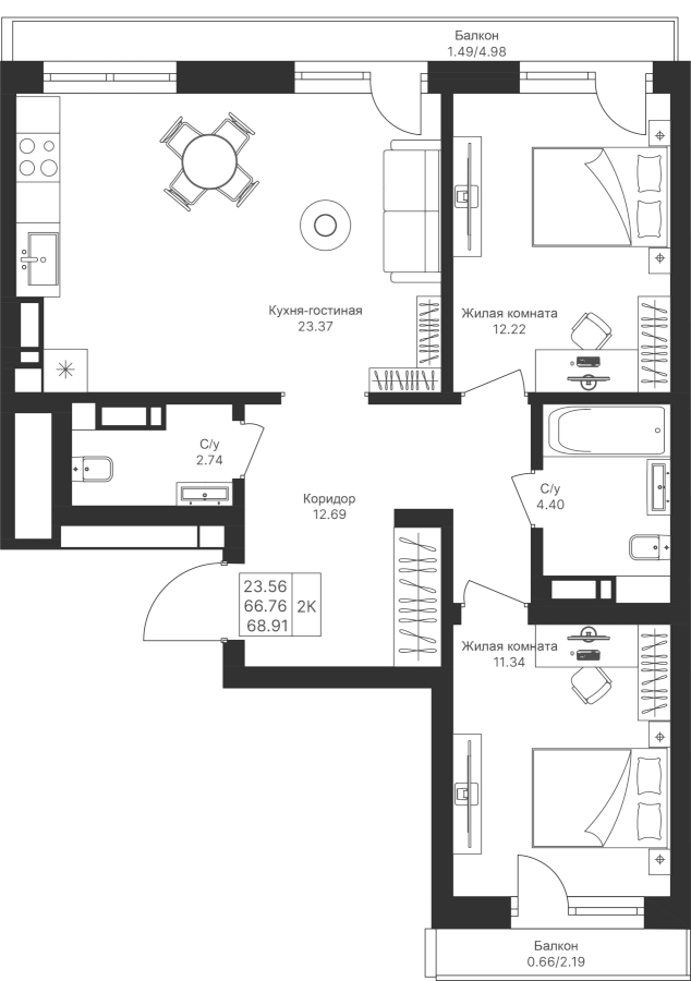 Визуализация и планировка, в том числе в части площади и размера стен жилого помещения, являются проектными и могут быть изменены в ходе строительства объекта. Цена квартиры зависит от выбранной программы и акции, актуальные цены можно уточнить у менеджеров и на момент заключения договора.