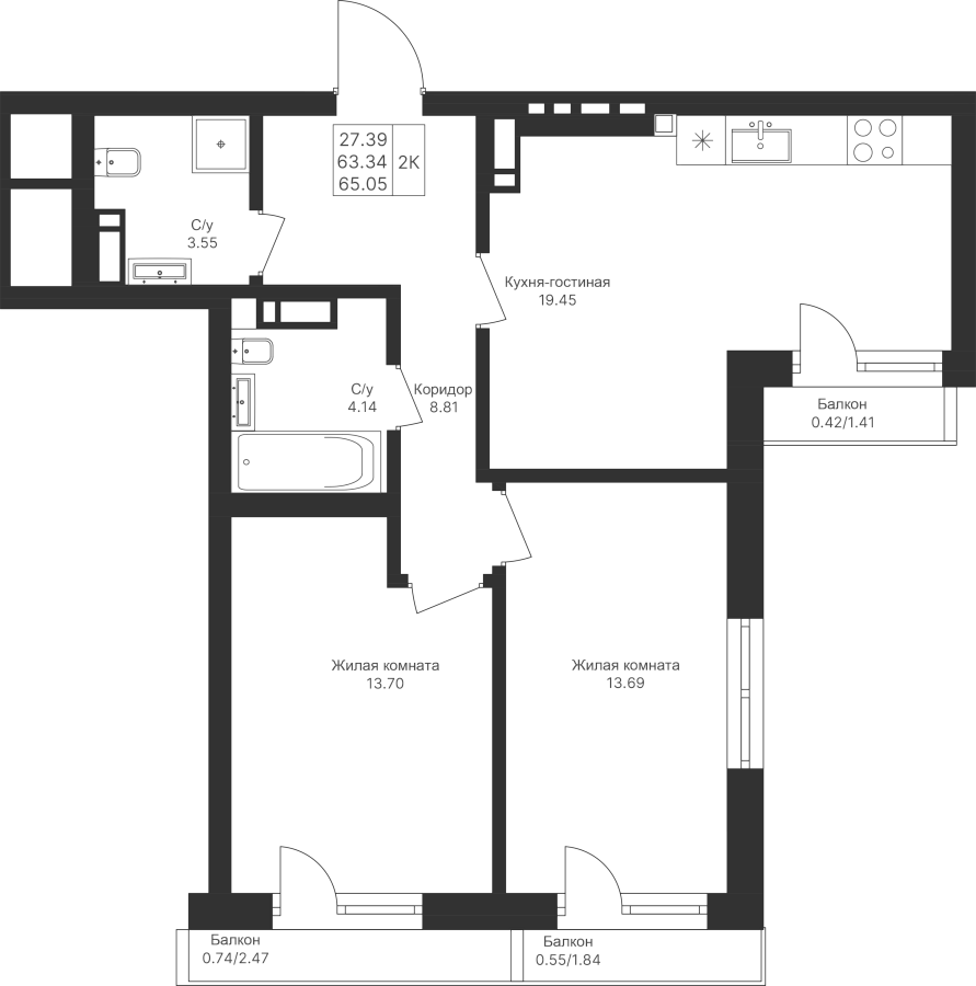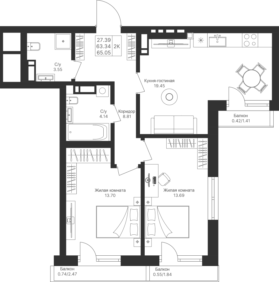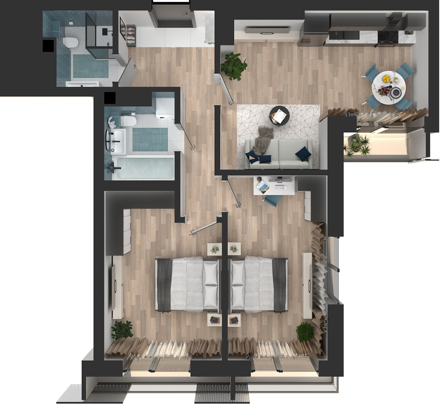 Визуализация и планировка, в том числе в части площади и размера стен жилого помещения, являются проектными и могут быть изменены в ходе строительства объекта. Цена квартиры зависит от выбранной программы и акции, актуальные цены можно уточнить у менеджеров и на момент заключения договора.