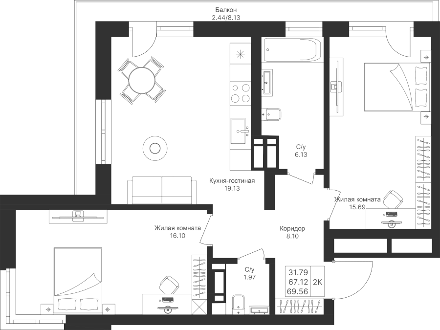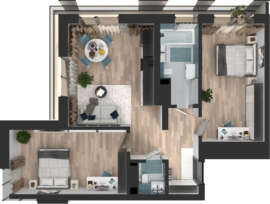 Визуализация и планировка, в том числе в части площади и размера стен жилого помещения, являются проектными и могут быть изменены в ходе строительства объекта. Цена квартиры зависит от выбранной программы и акции, актуальные цены можно уточнить у менеджеров и на момент заключения договора.