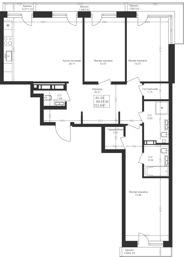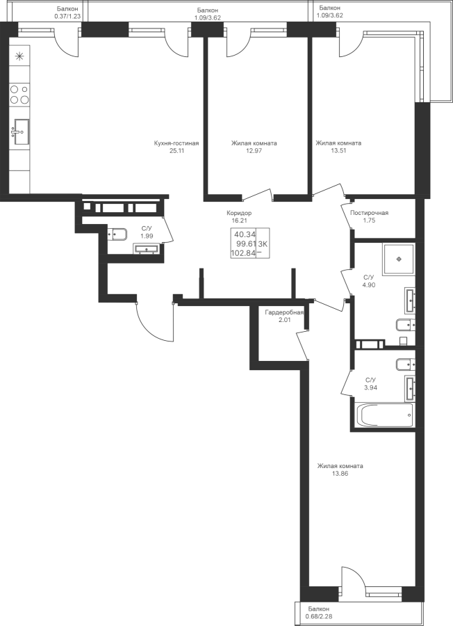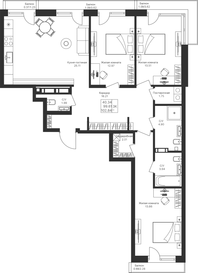 3-к квартира 102.84 м²