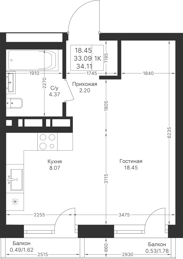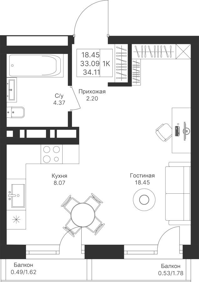 Визуализация и планировка, в том числе в части площади и размера стен жилого помещения, являются проектными и могут быть изменены в ходе строительства объекта. Цена квартиры зависит от выбранной программы и акции, актуальные цены можно уточнить у менеджеров и на момент заключения договора.