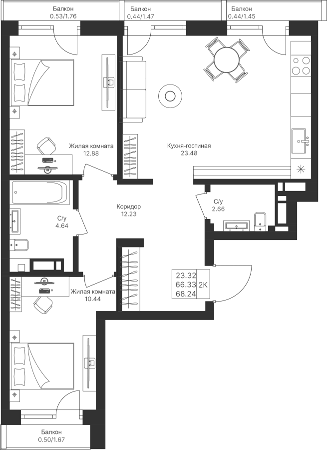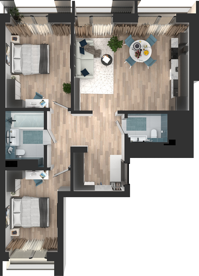 Визуализация и планировка, в том числе в части площади и размера стен жилого помещения, являются проектными и могут быть изменены в ходе строительства объекта. Цена квартиры зависит от выбранной программы и акции, актуальные цены можно уточнить у менеджеров и на момент заключения договора.
