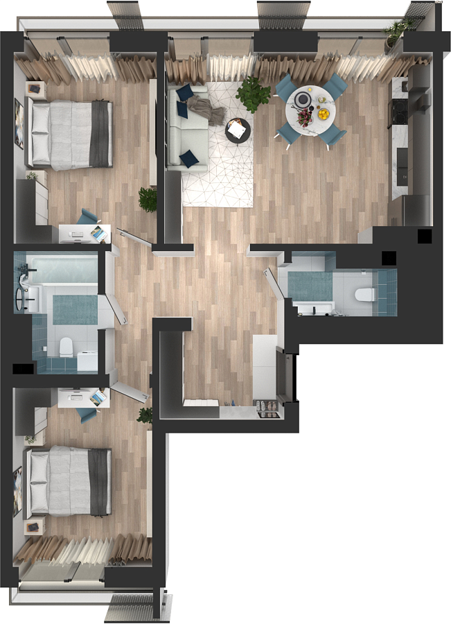 Визуализация и планировка, в том числе в части площади и размера стен жилого помещения, являются проектными и могут быть изменены в ходе строительства объекта. Цена квартиры зависит от выбранной программы и акции, актуальные цены можно уточнить у менеджеров и на момент заключения договора.