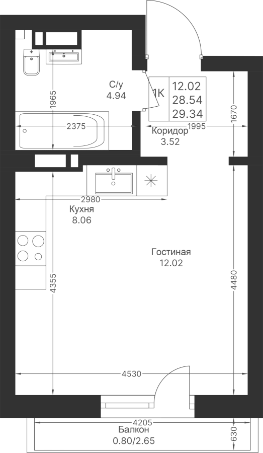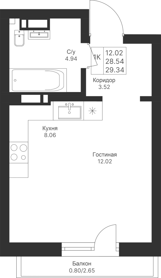 Студия 29.34 м²