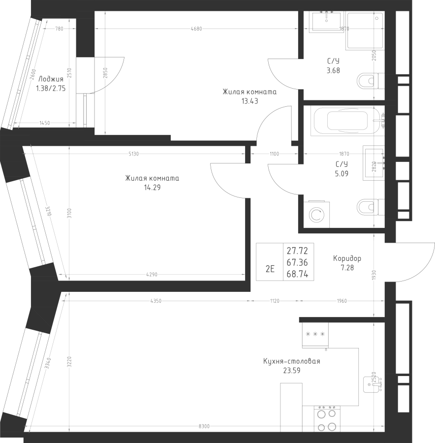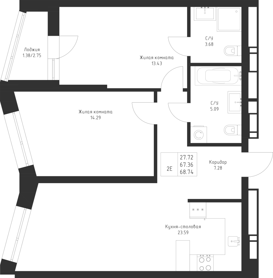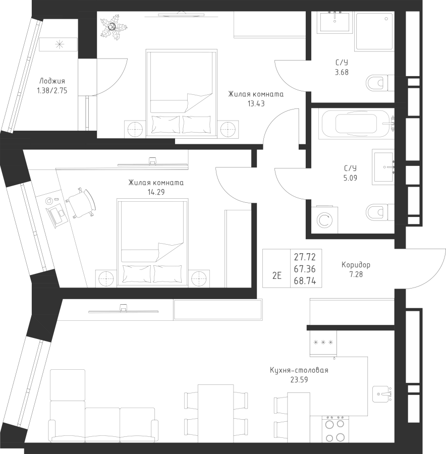 Визуализация и планировка, в том числе в части площади и размера стен жилого помещения, являются проектными и могут быть изменены в ходе строительства объекта. Цена квартиры зависит от выбранной программы и акции, актуальные цены можно уточнить у менеджеров и на момент заключения договора.