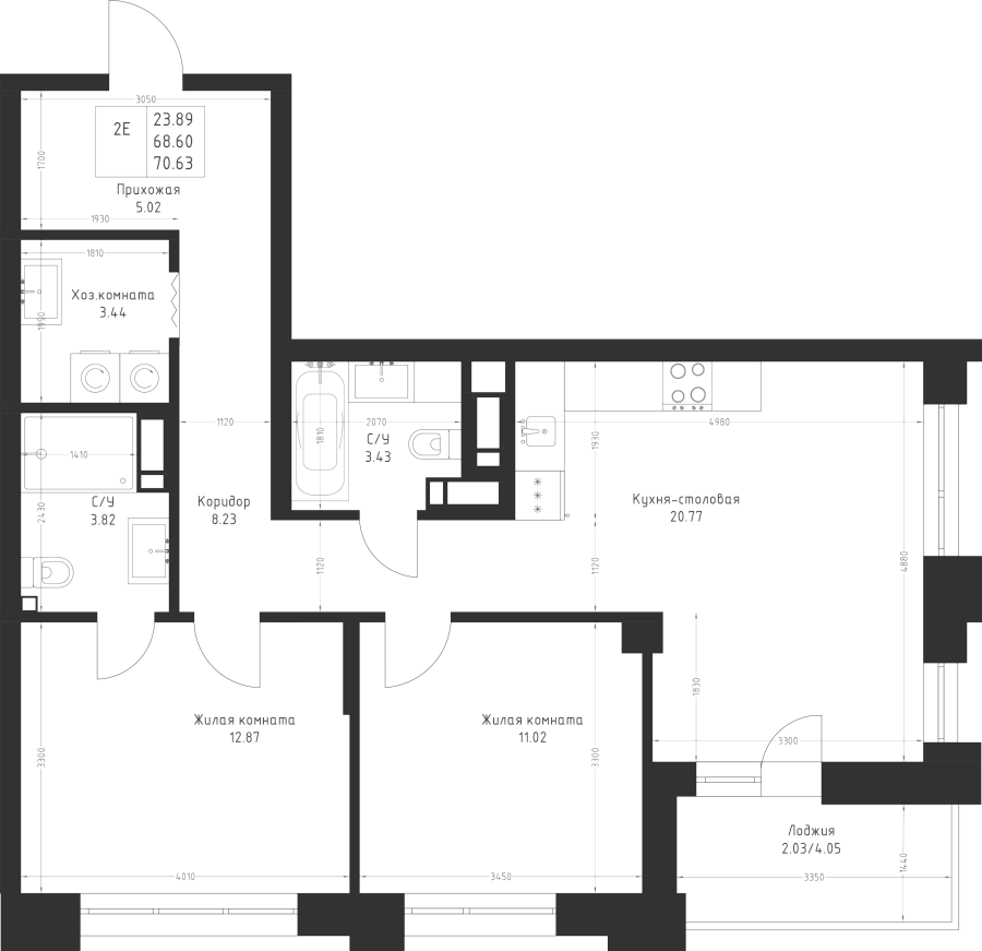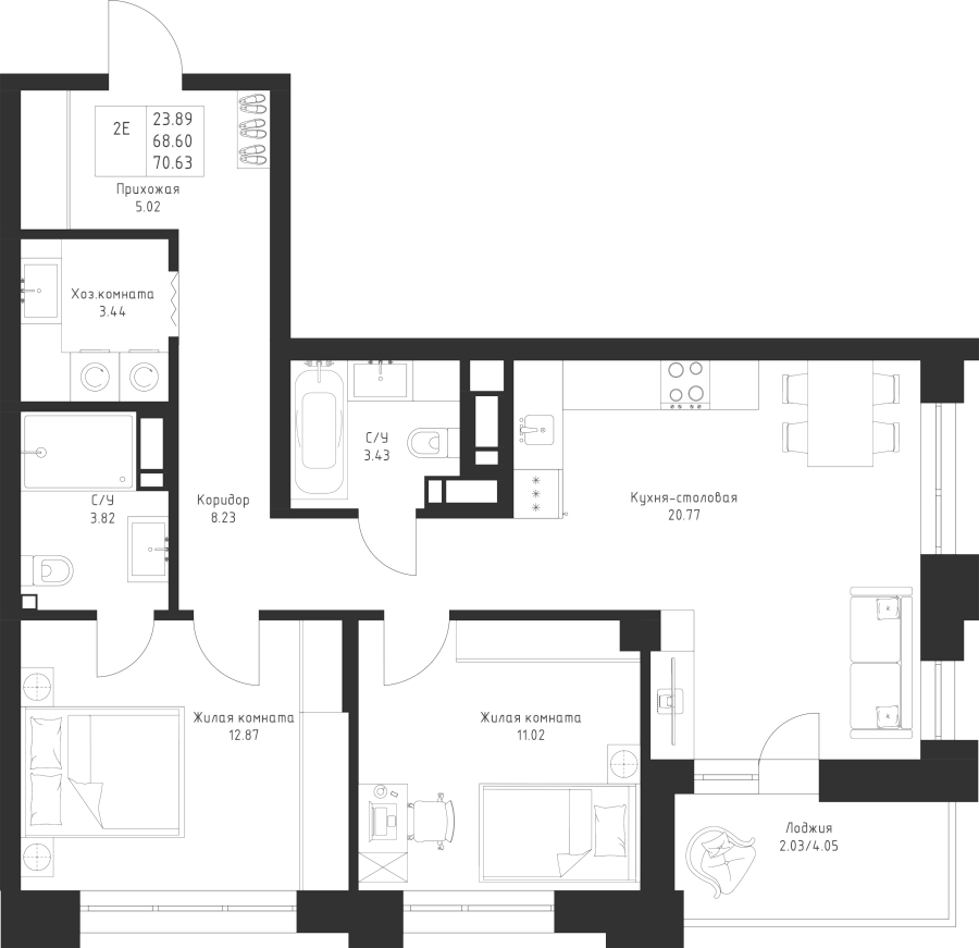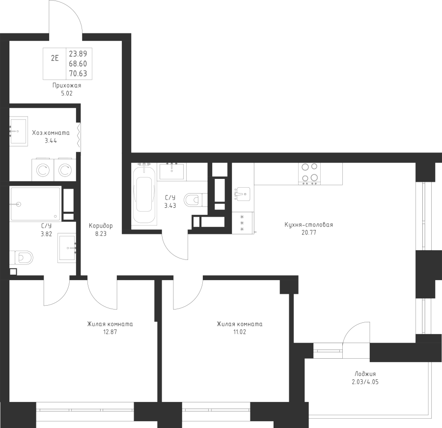 2-к квартира 70.63 м²