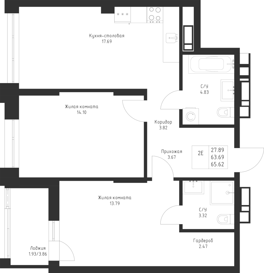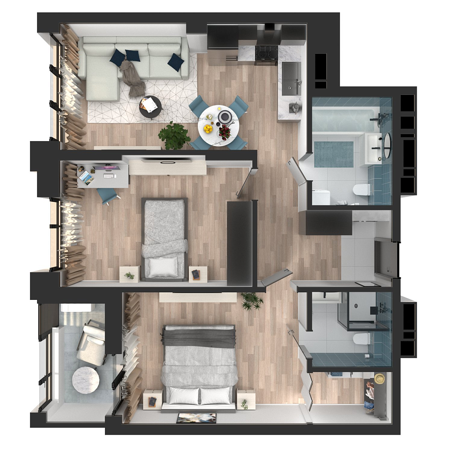 Визуализация и планировка, в том числе в части площади и размера стен жилого помещения, являются проектными и могут быть изменены в ходе строительства объекта. Цена квартиры зависит от выбранной программы и акции, актуальные цены можно уточнить у менеджеров и на момент заключения договора.
