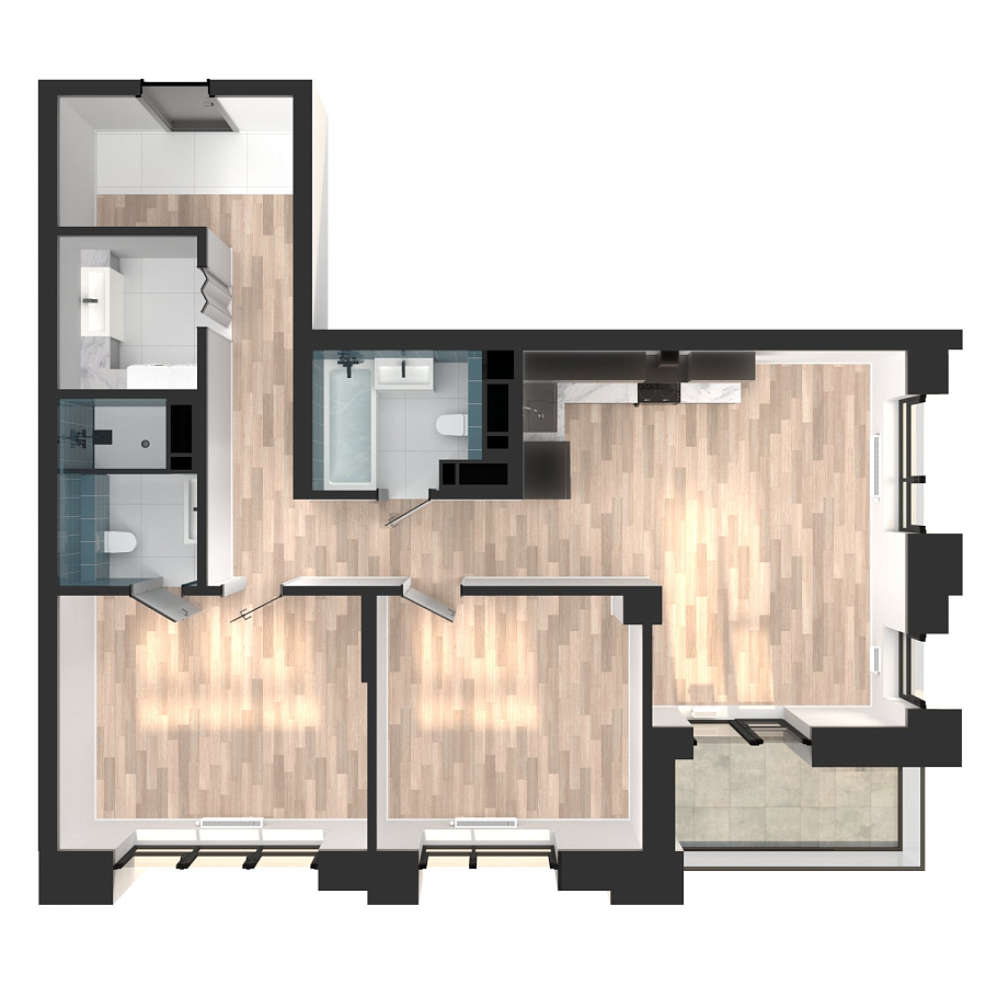 Визуализация и планировка, в том числе в части площади и размера стен жилого помещения, являются проектными и могут быть изменены в ходе строительства объекта. Цена квартиры зависит от выбранной программы и акции, актуальные цены можно уточнить у менеджеров и на момент заключения договора.