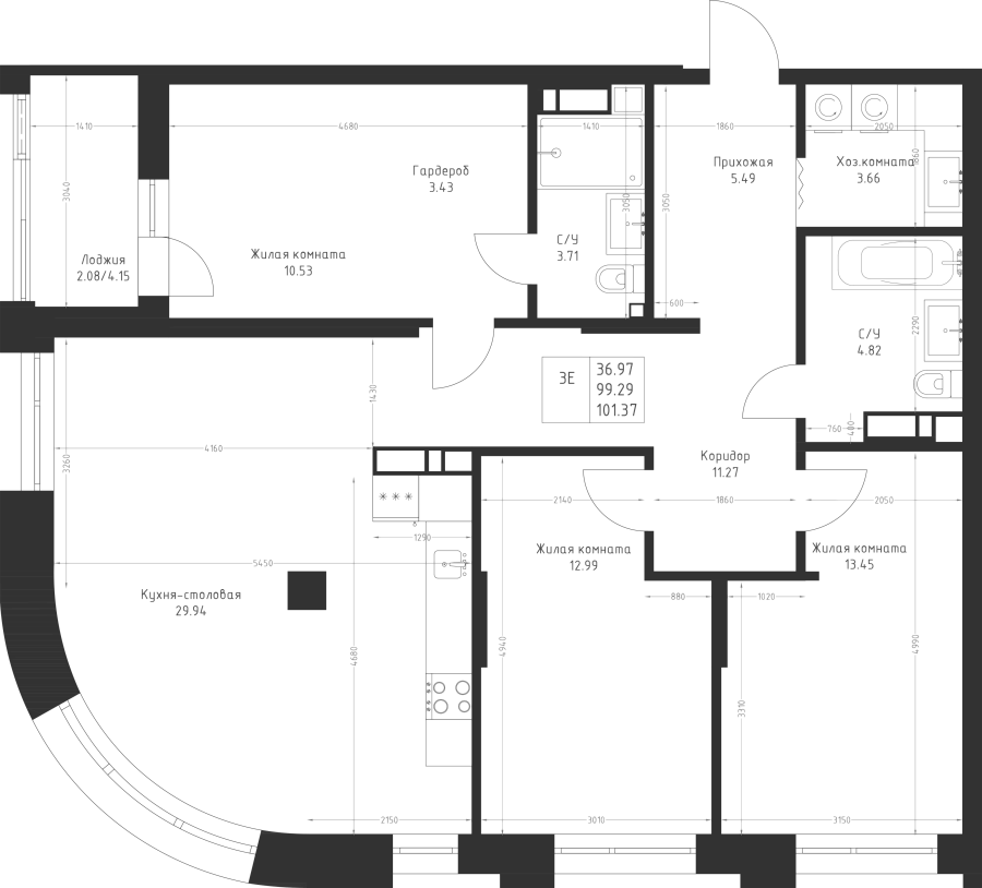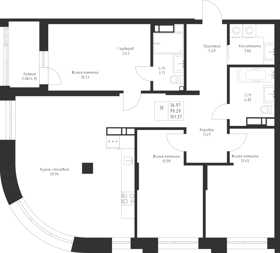 3-к квартира 101.37 м²