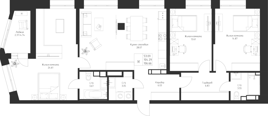 Визуализация и планировка, в том числе в части площади и размера стен жилого помещения, являются проектными и могут быть изменены в ходе строительства объекта. Цена квартиры зависит от выбранной программы и акции, актуальные цены можно уточнить у менеджеров и на момент заключения договора.