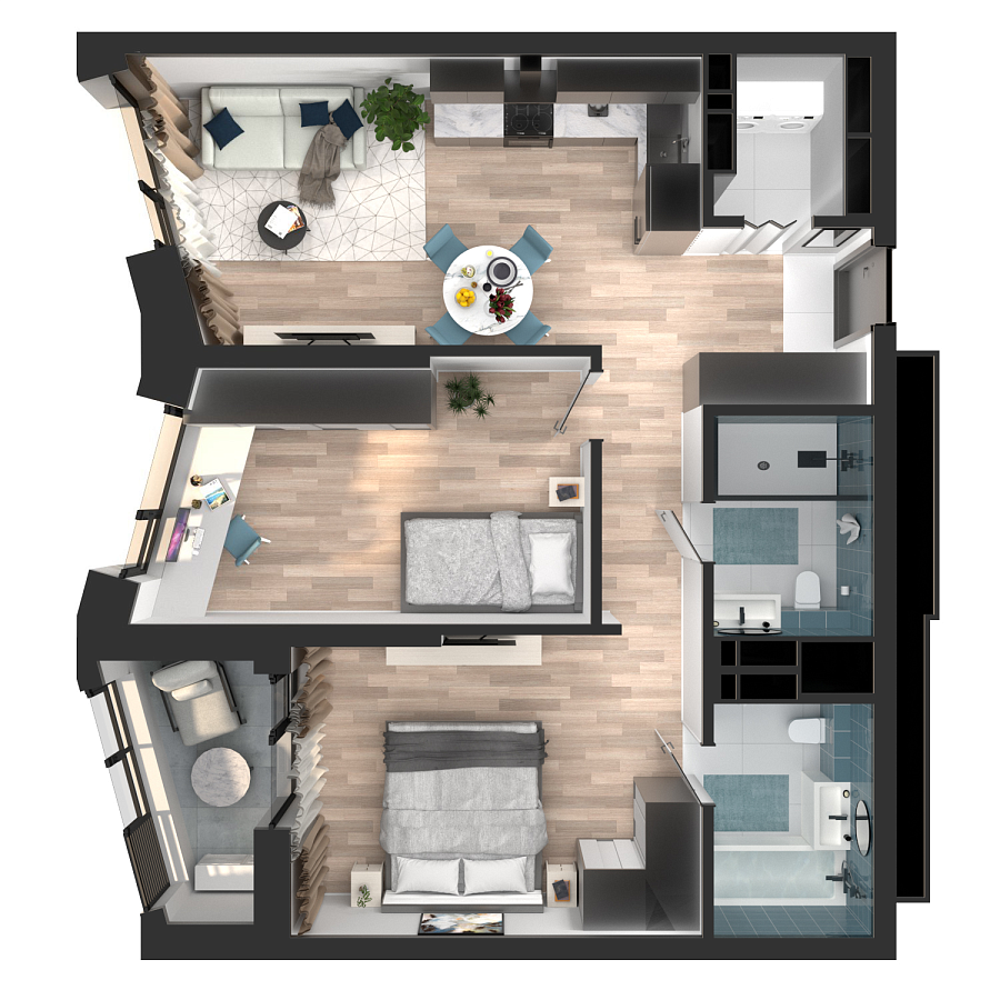 Визуализация и планировка, в том числе в части площади и размера стен жилого помещения, являются проектными и могут быть изменены в ходе строительства объекта. Цена квартиры зависит от выбранной программы и акции, актуальные цены можно уточнить у менеджеров и на момент заключения договора.
