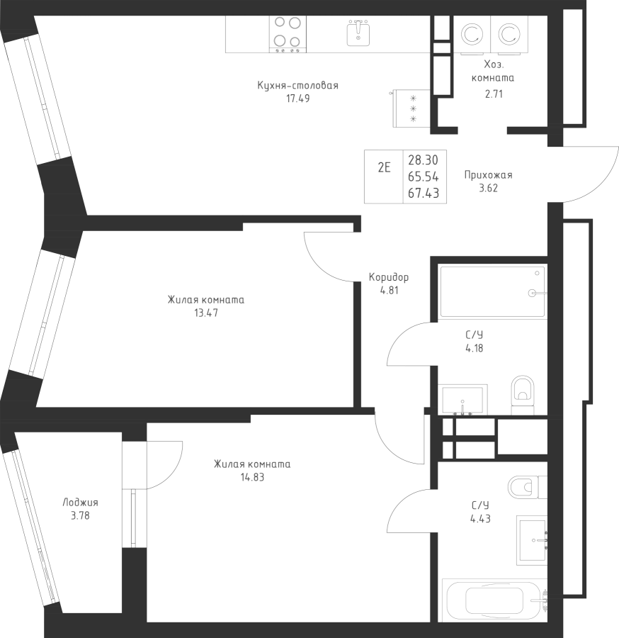 2-к квартира 67.43 м²