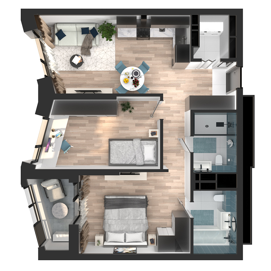 Визуализация и планировка, в том числе в части площади и размера стен жилого помещения, являются проектными и могут быть изменены в ходе строительства объекта. Цена квартиры зависит от выбранной программы и акции, актуальные цены можно уточнить у менеджеров и на момент заключения договора.
