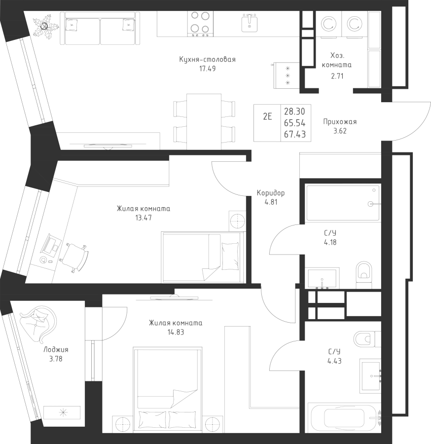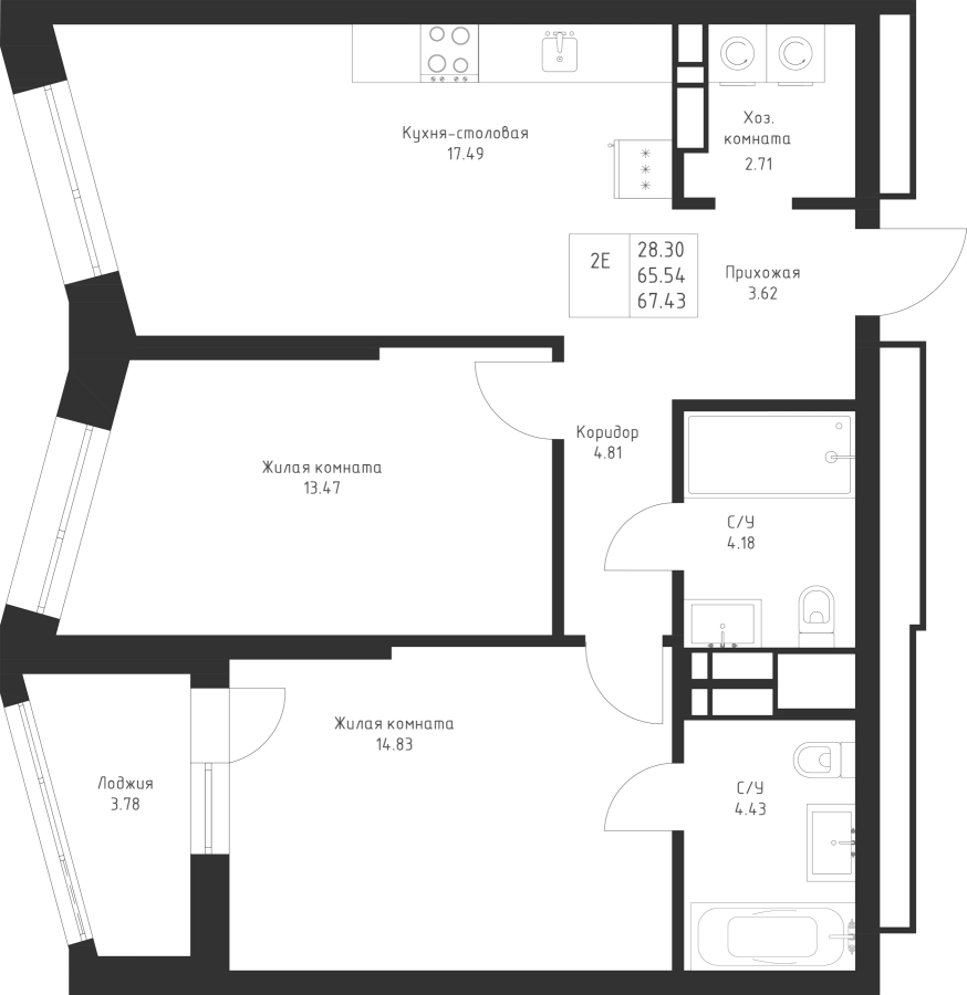 2-к квартира 67.43 м²