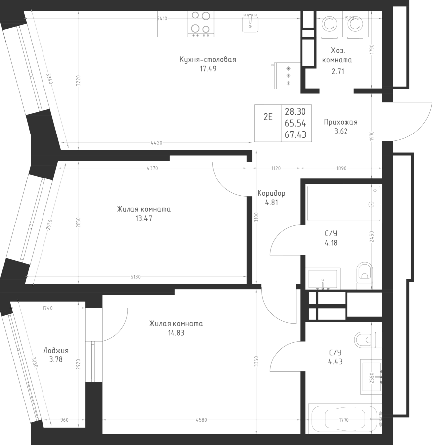 2-к квартира 67.43 м²