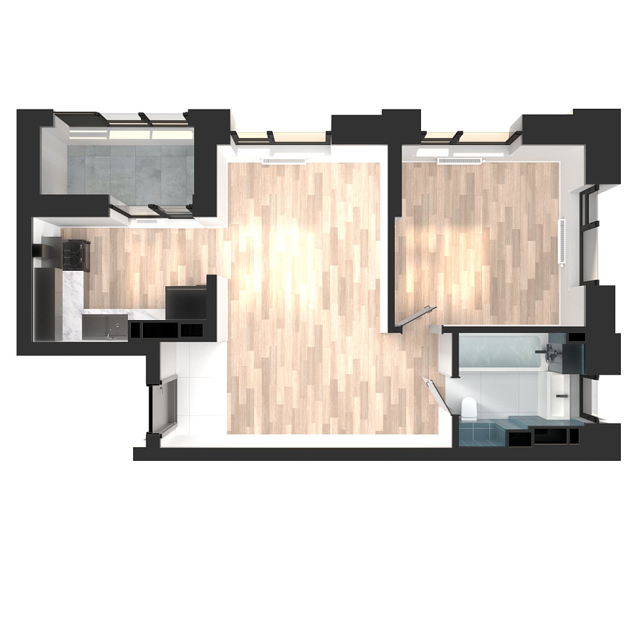 Визуализация и планировка, в том числе в части площади и размера стен жилого помещения, являются проектными и могут быть изменены в ходе строительства объекта. Цена квартиры зависит от выбранной программы и акции, актуальные цены можно уточнить у менеджеров и на момент заключения договора.