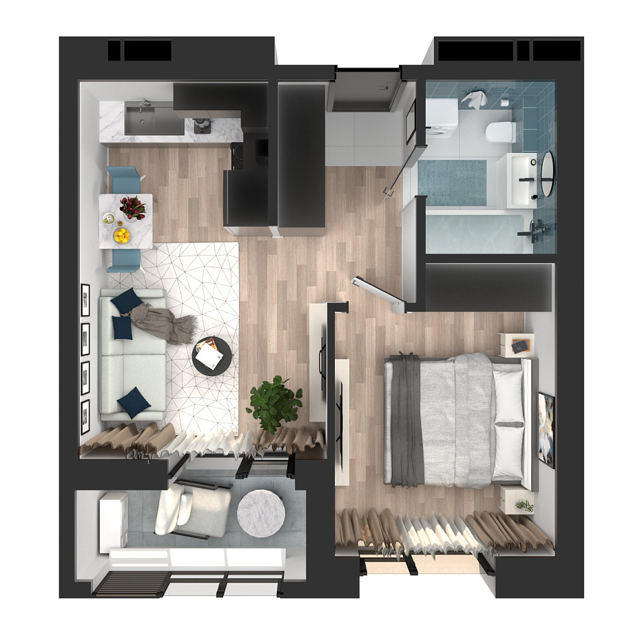 Визуализация и планировка, в том числе в части площади и размера стен жилого помещения, являются проектными и могут быть изменены в ходе строительства объекта. Цена квартиры зависит от выбранной программы и акции, актуальные цены можно уточнить у менеджеров и на момент заключения договора.