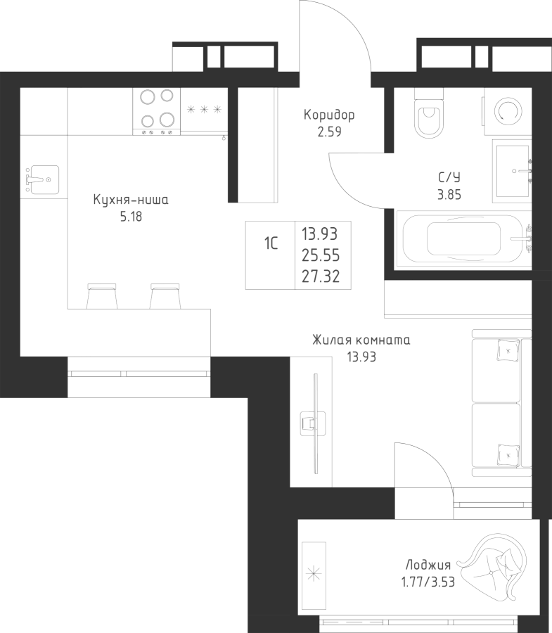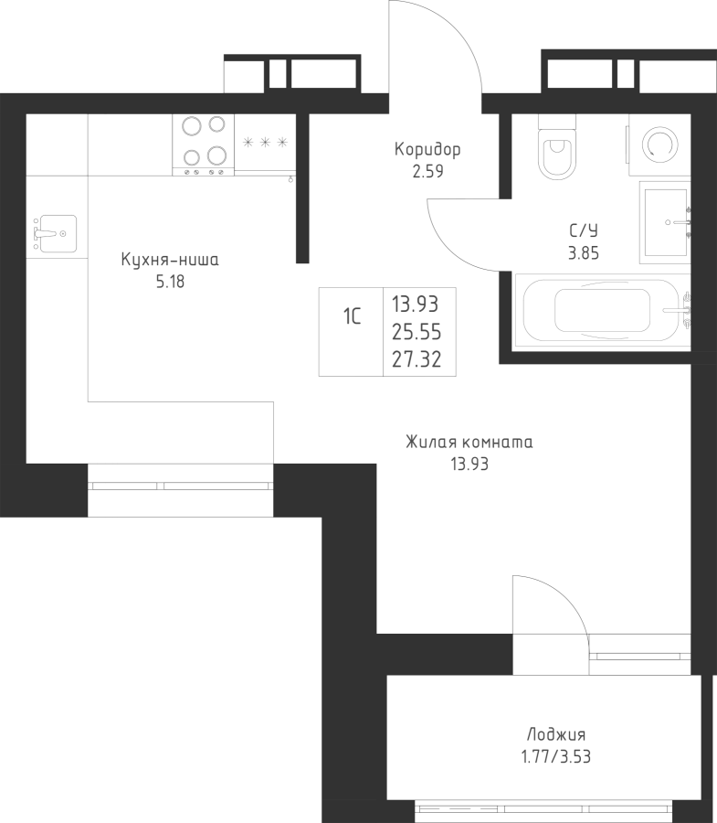 Студия 27.32 м²